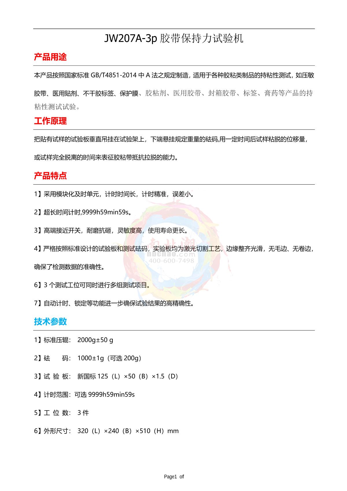 jingwen JW207A-3p Tape holding force testing machine brochure