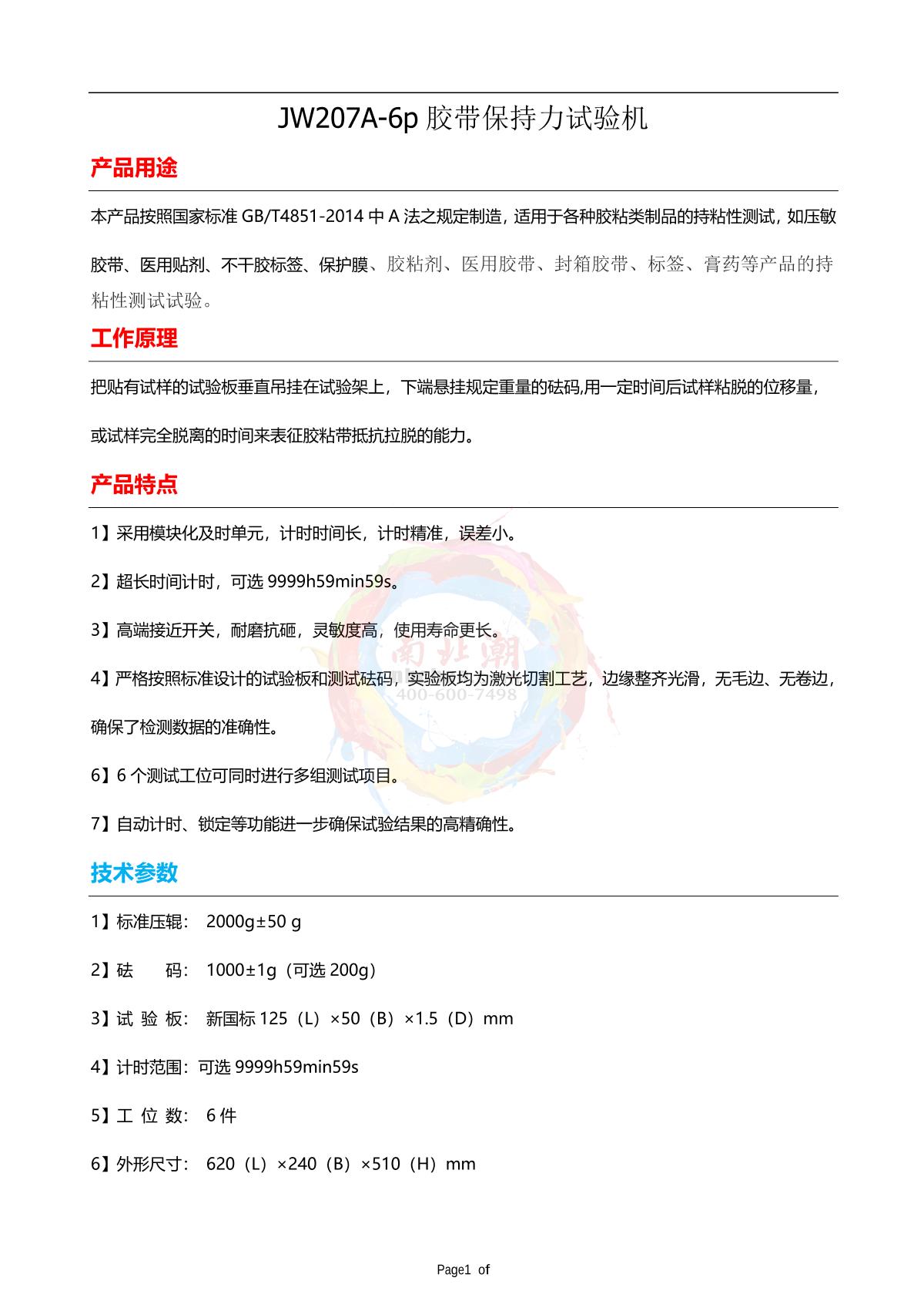 jingwen JW207A-6p Tape holding force testing machine Manual,OI
