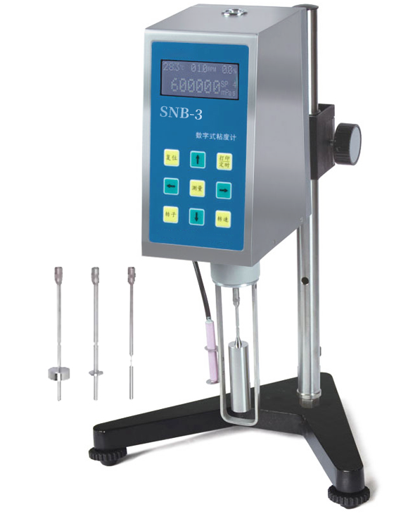 The LCD screen of the SNB-3 digital display rotary viscometer can display the viscosity, speed, temperature, percentmeter torque, rotor number and the maximum viscosity value that can be measured by the selected rotor at the current speed. It is a measuring range of 160~80,000,000 mPa · secondstargetDigital rotary viscometer。