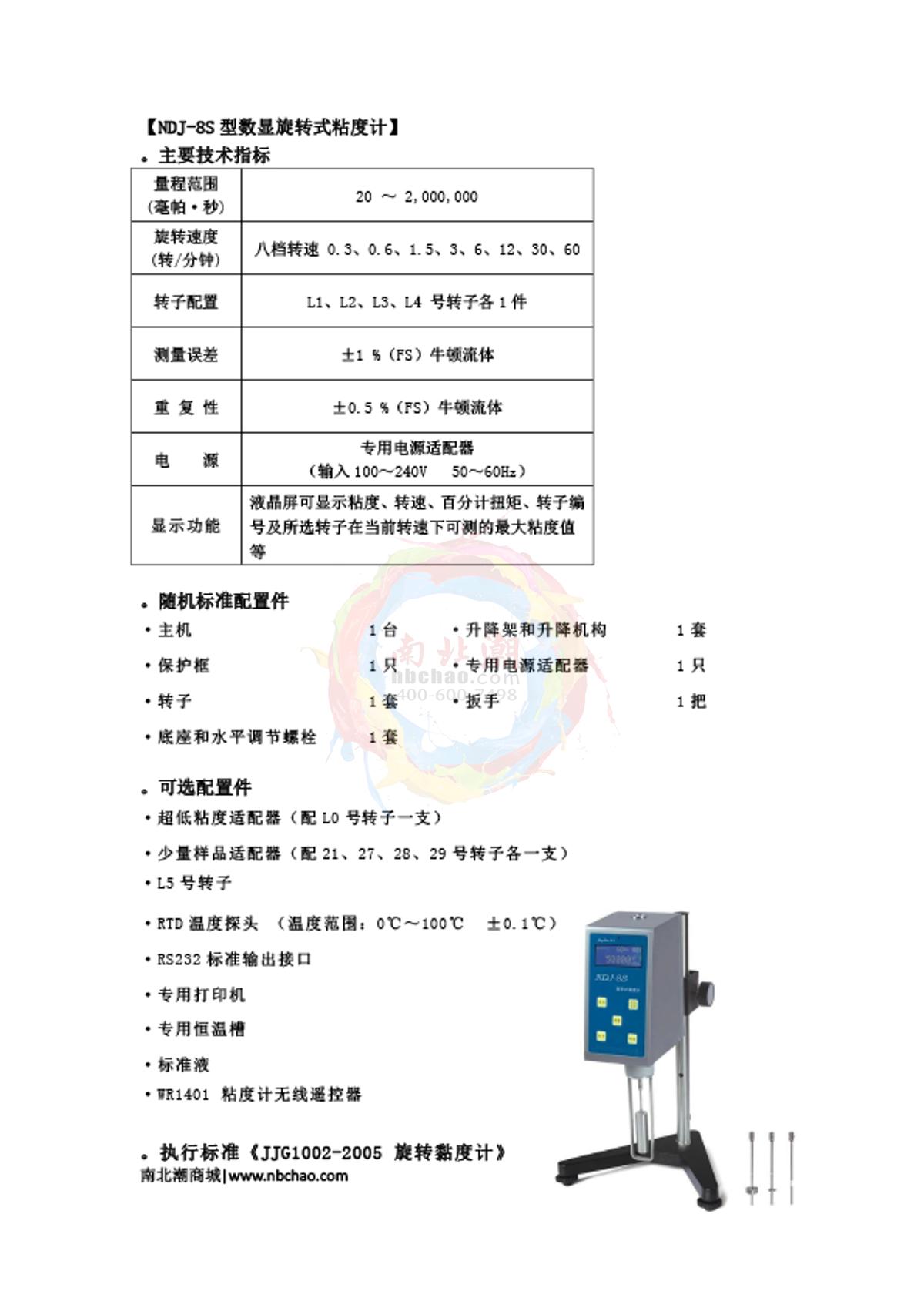 HuiNuo NDJ-8S RTD Digital Rotational Viscometer brochure