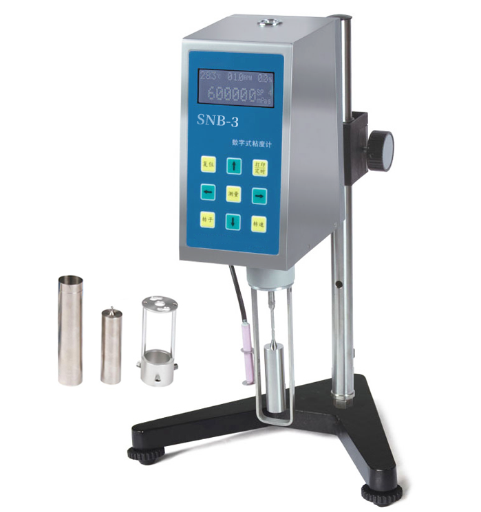 The LCD screen of the SNB-3 digital display rotary viscometer can display viscosity, shear rate, shear stress, speed, temperature, dial torque, rotor number and the maximum viscosity value that can be measured at the current speed of the selected rotor. It is a measuring range of 160~80,000,000 mPa · secondstargetDigital rotary viscometer。