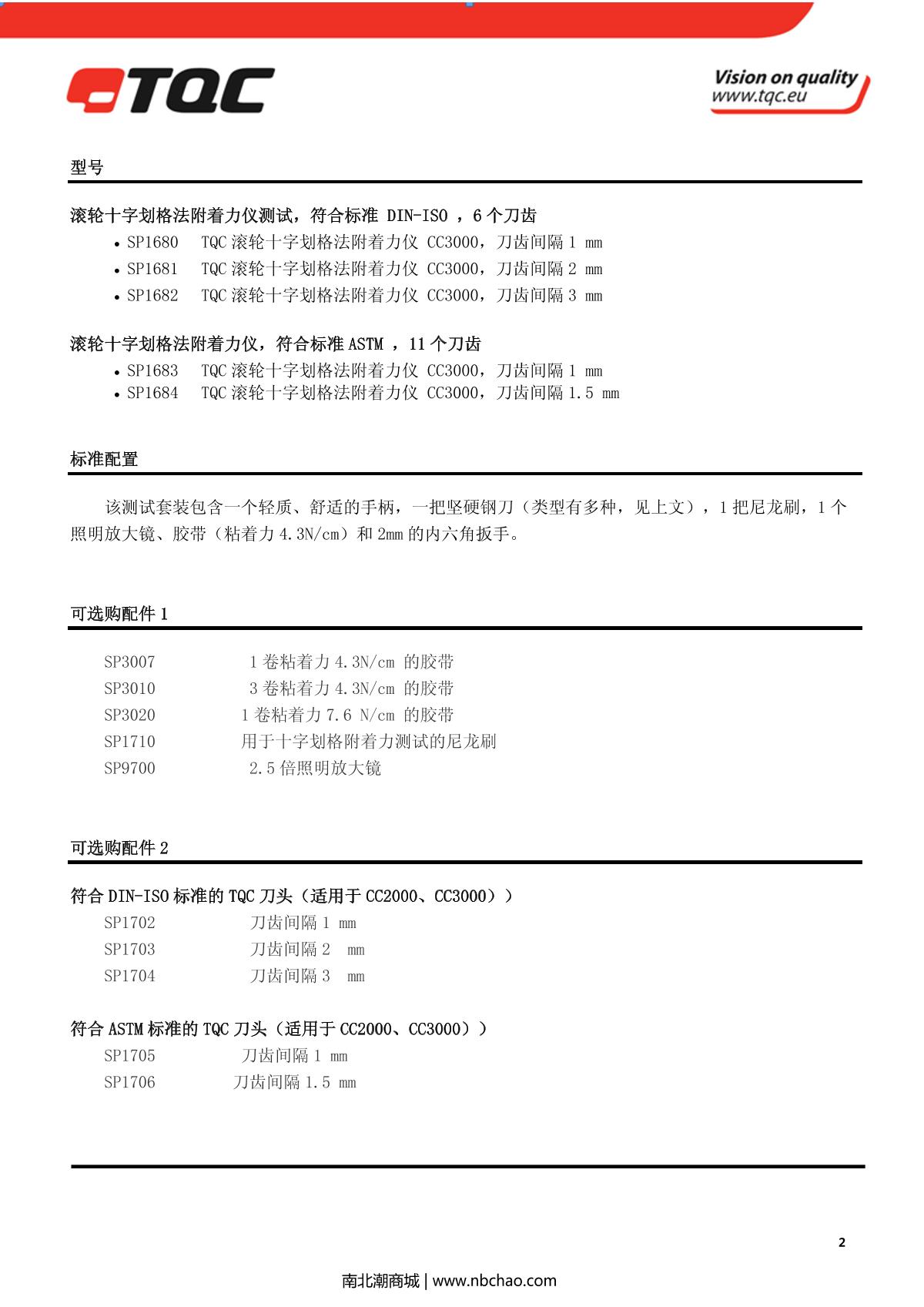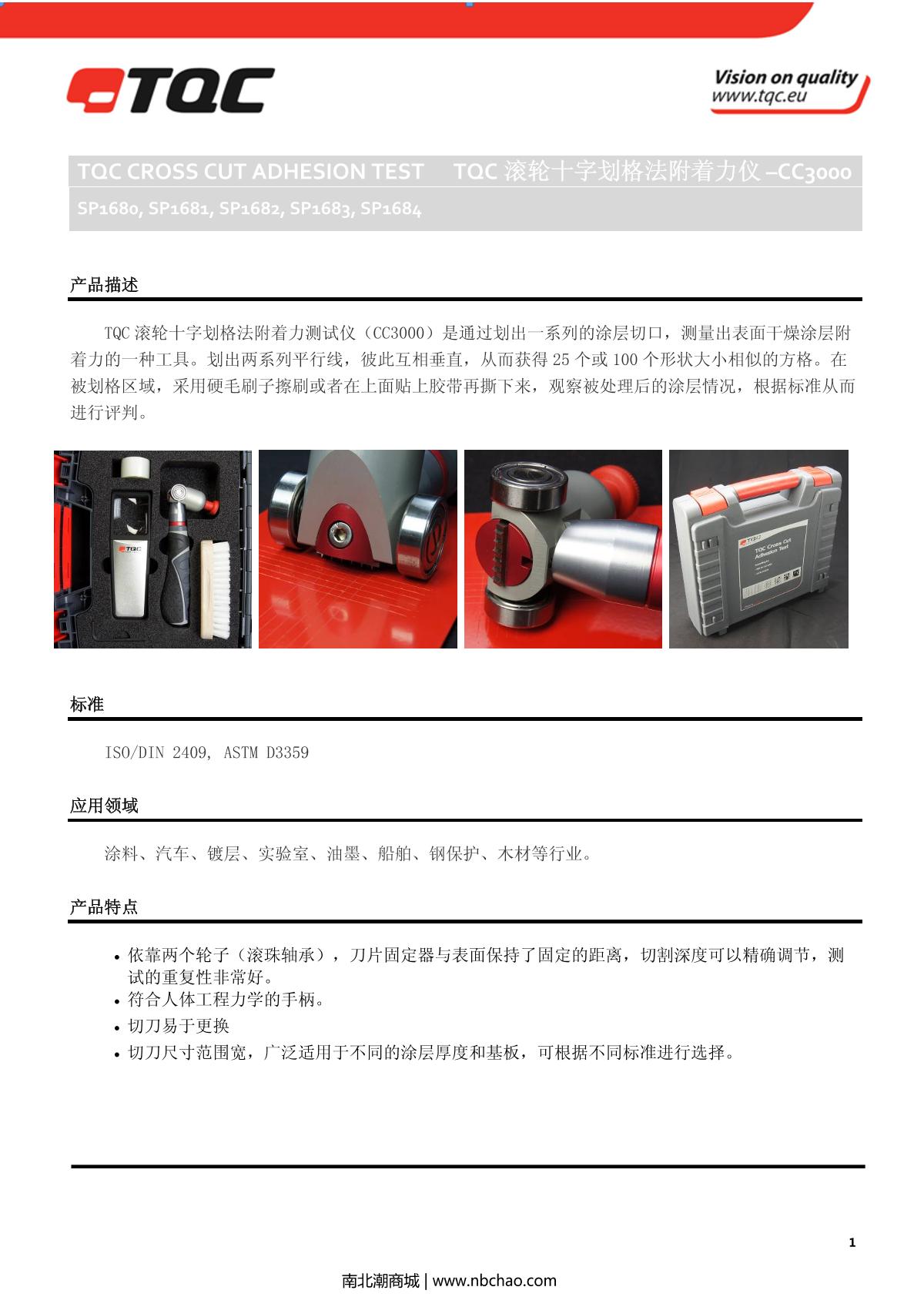TQC sheen SP1682 Adjustable cross-cut adhesion Tester brochure