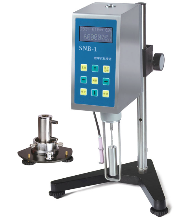The LCD screen of the SNB-1 digital display rotary viscometer can display viscosity, shear rate, shear stress, rotational speed, temperature, percentmeter torque, rotor number and the maximum viscosity value that can be measured at the current speed of the selected rotor. It is a digital rotary viscometer with a range of 20~600,000 mPa · seconds.