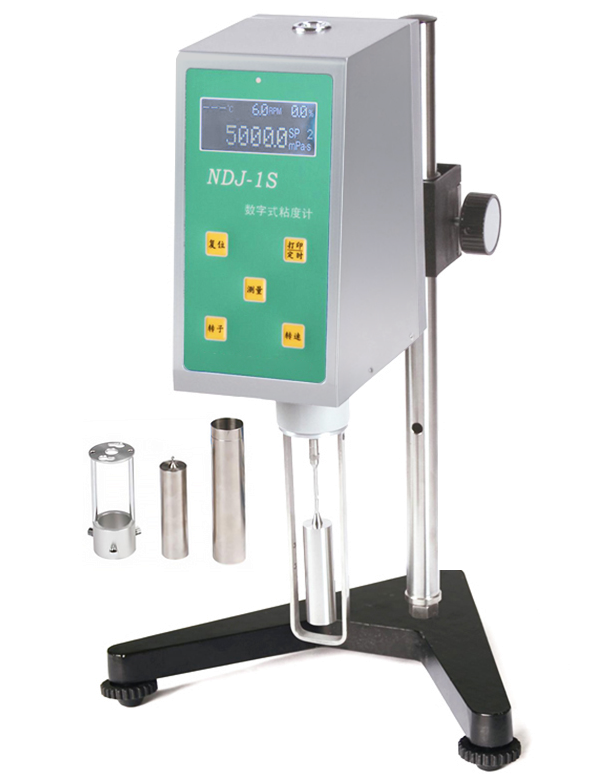 The LCD screen of NDJ-1S digital display rotary viscometer can display viscosity, shear rate, shear stress, rotational speed, temperature, percentmeter torque, rotor number and the maximum viscosity value that can be measured at the current speed of the selected rotor. It is a digital display rotary viscometer with a range of 0~100,000 mPa·s.