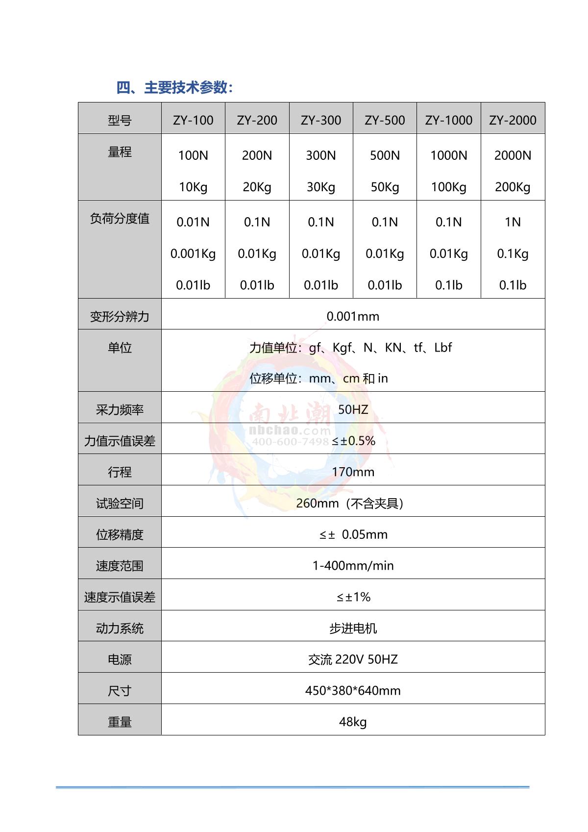 HBO ZY-100 Desktop electronic universal testing machine brochure