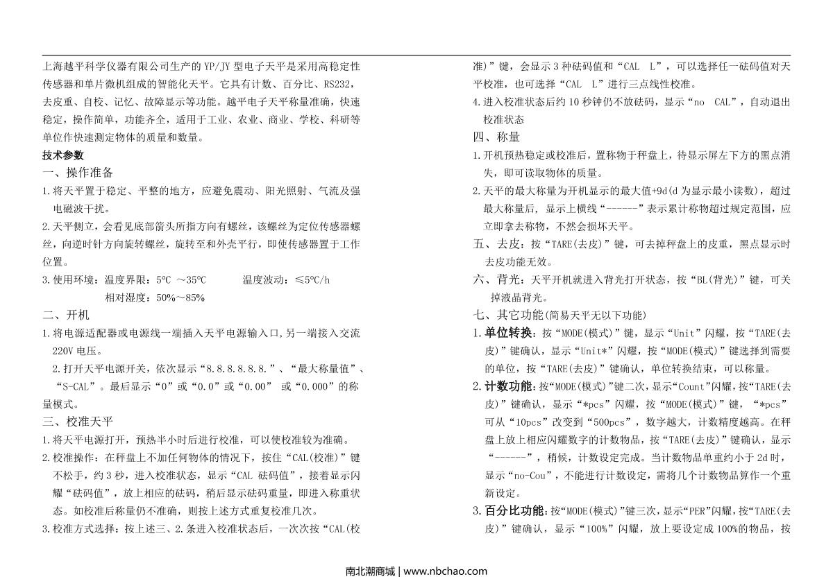 YuePing DSJ-2 Hydrostatic balance Manual,OI