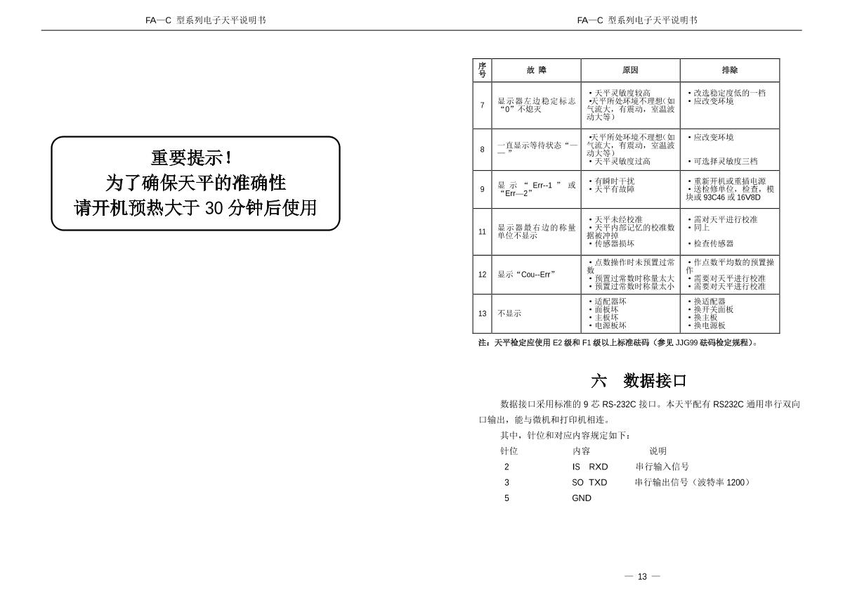 - 9YuePing JA2003C Electronic Balance Manual