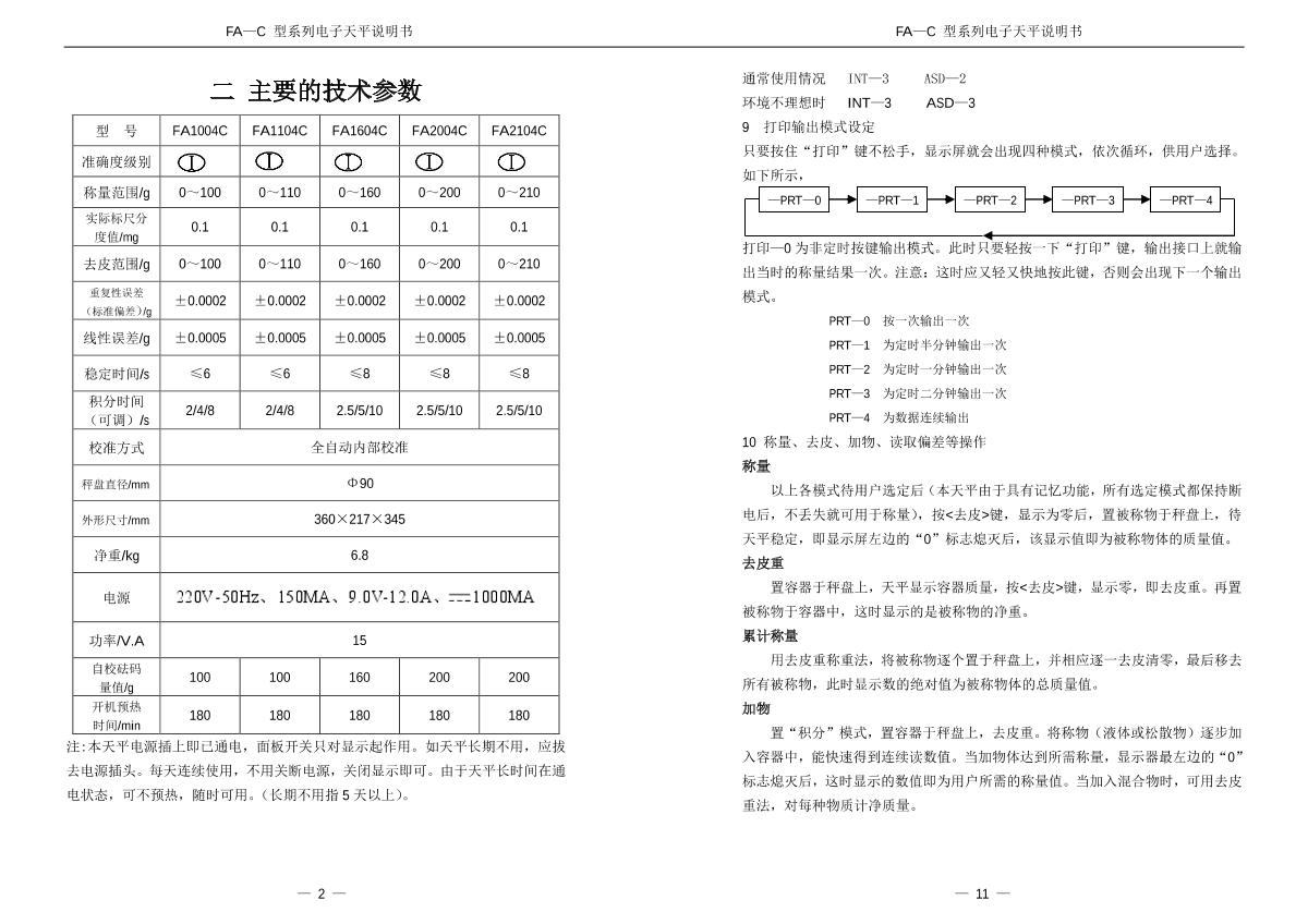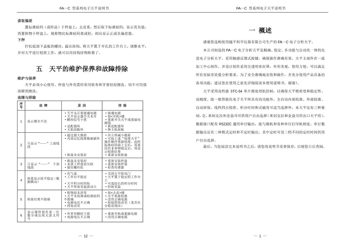 YuePing FA1004C Analytical Balance Manual,OI