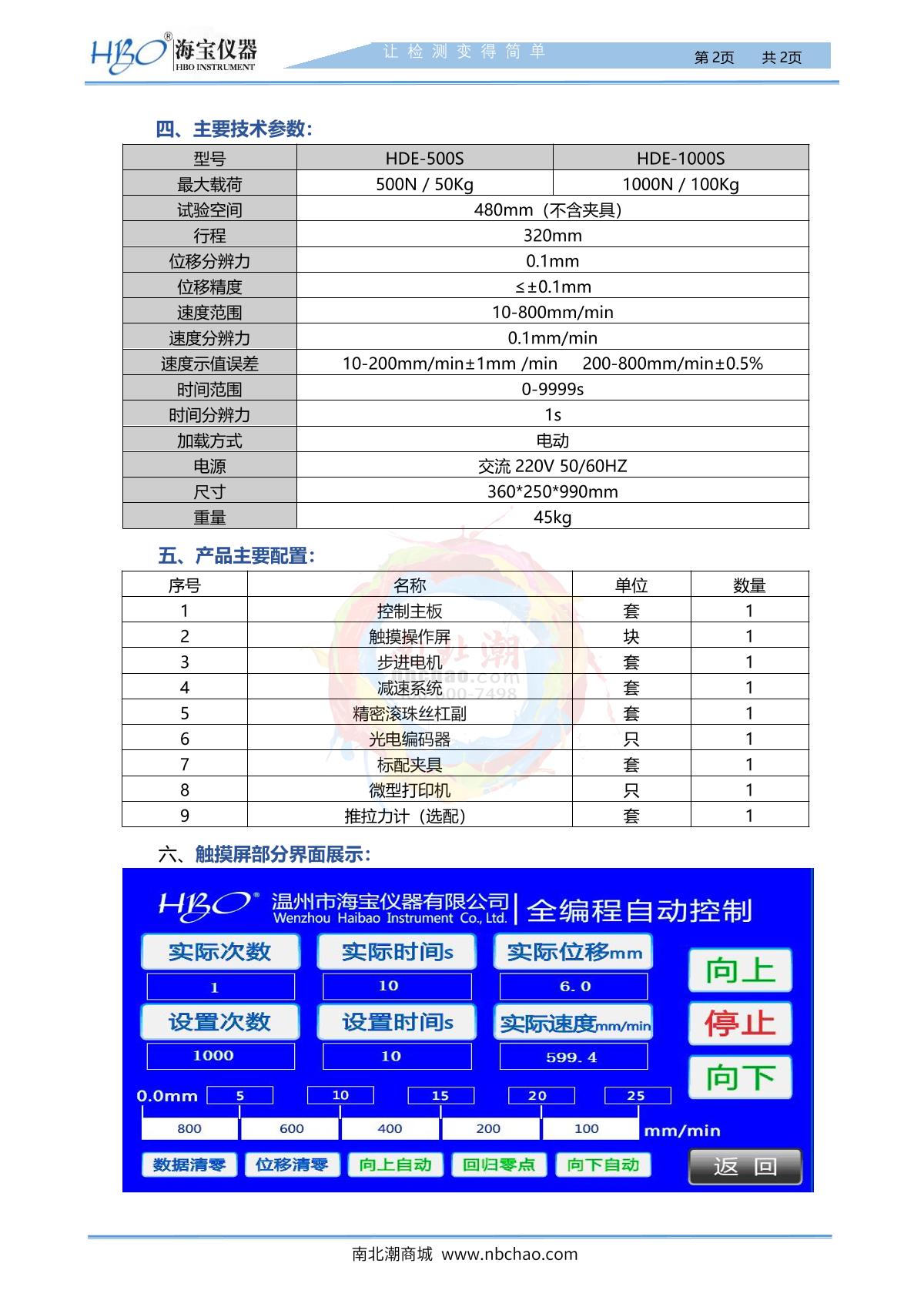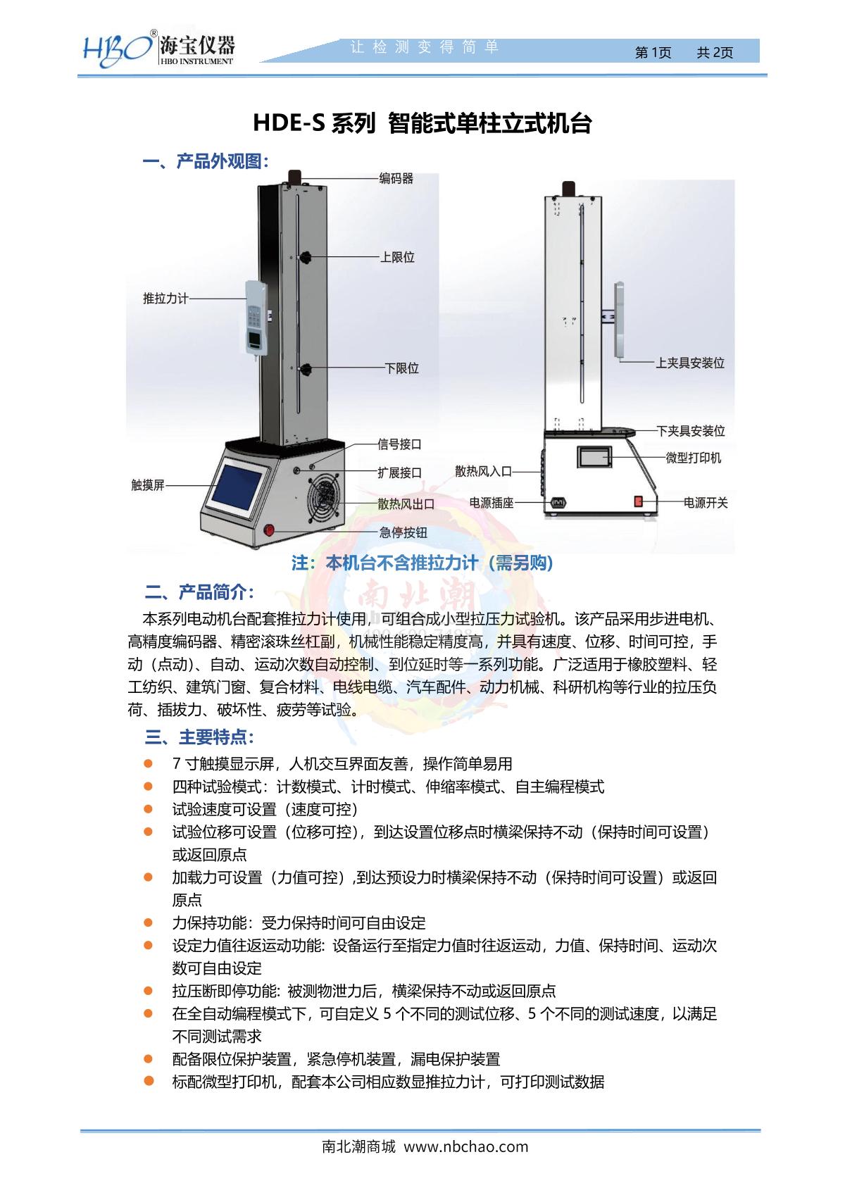 HBO HDE-500S Intelligent single column vertical machine brochure