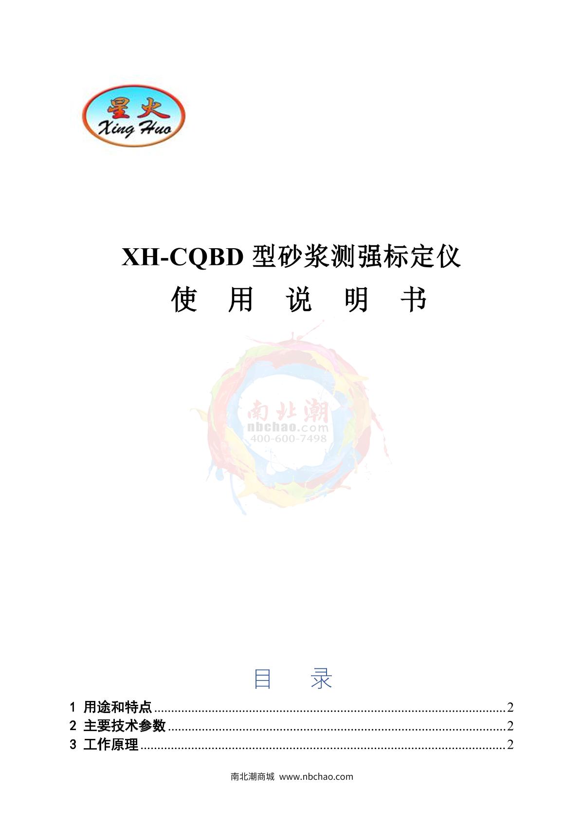 TianDiXingHuo XH-CQBD Mortar strength calibrator Manual,OI
