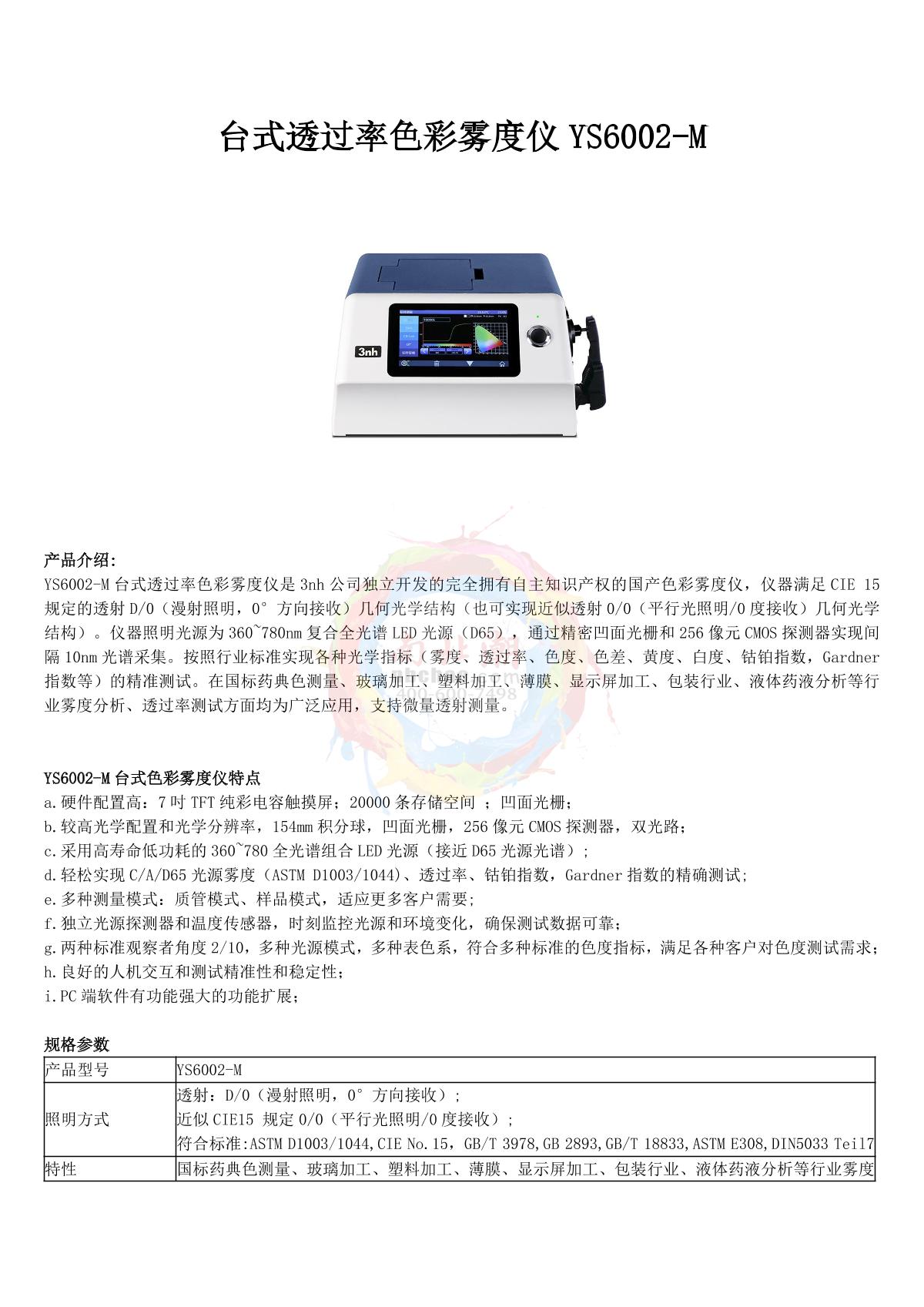 3NH YS6002-M Desktop Transmittance Color Haze Meter brochure