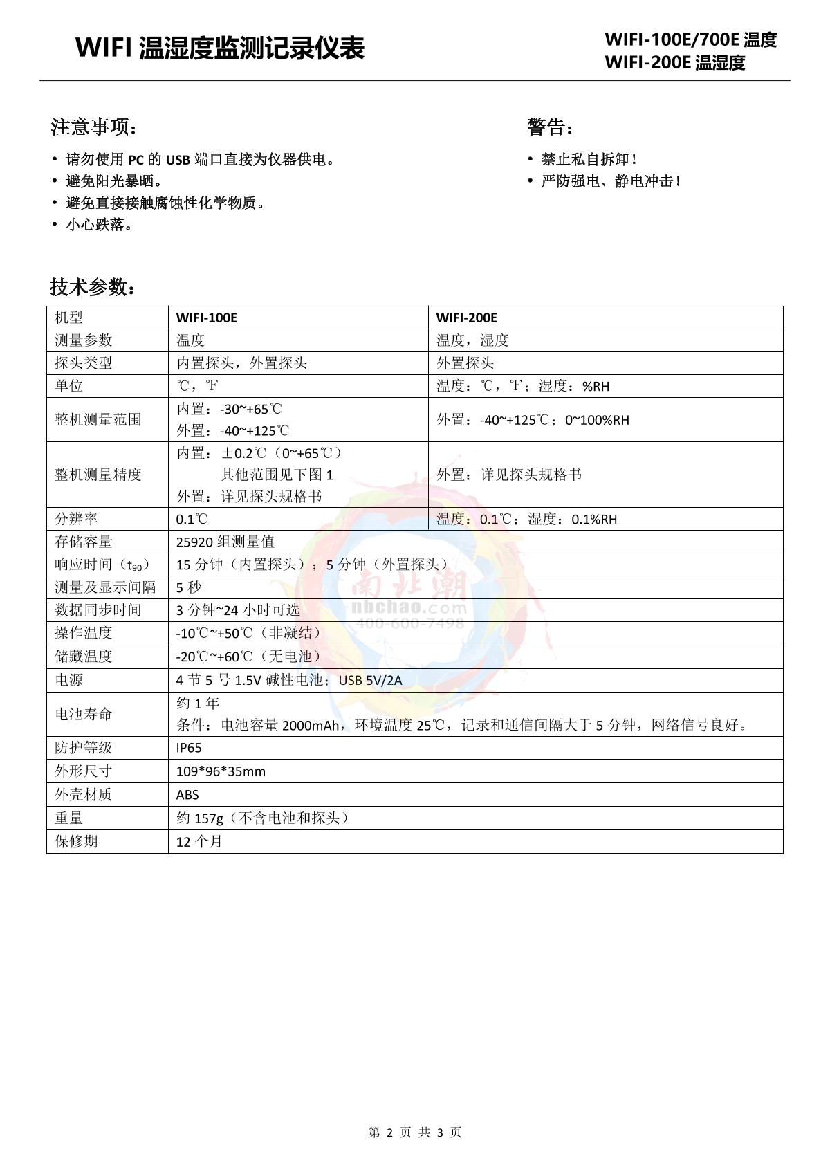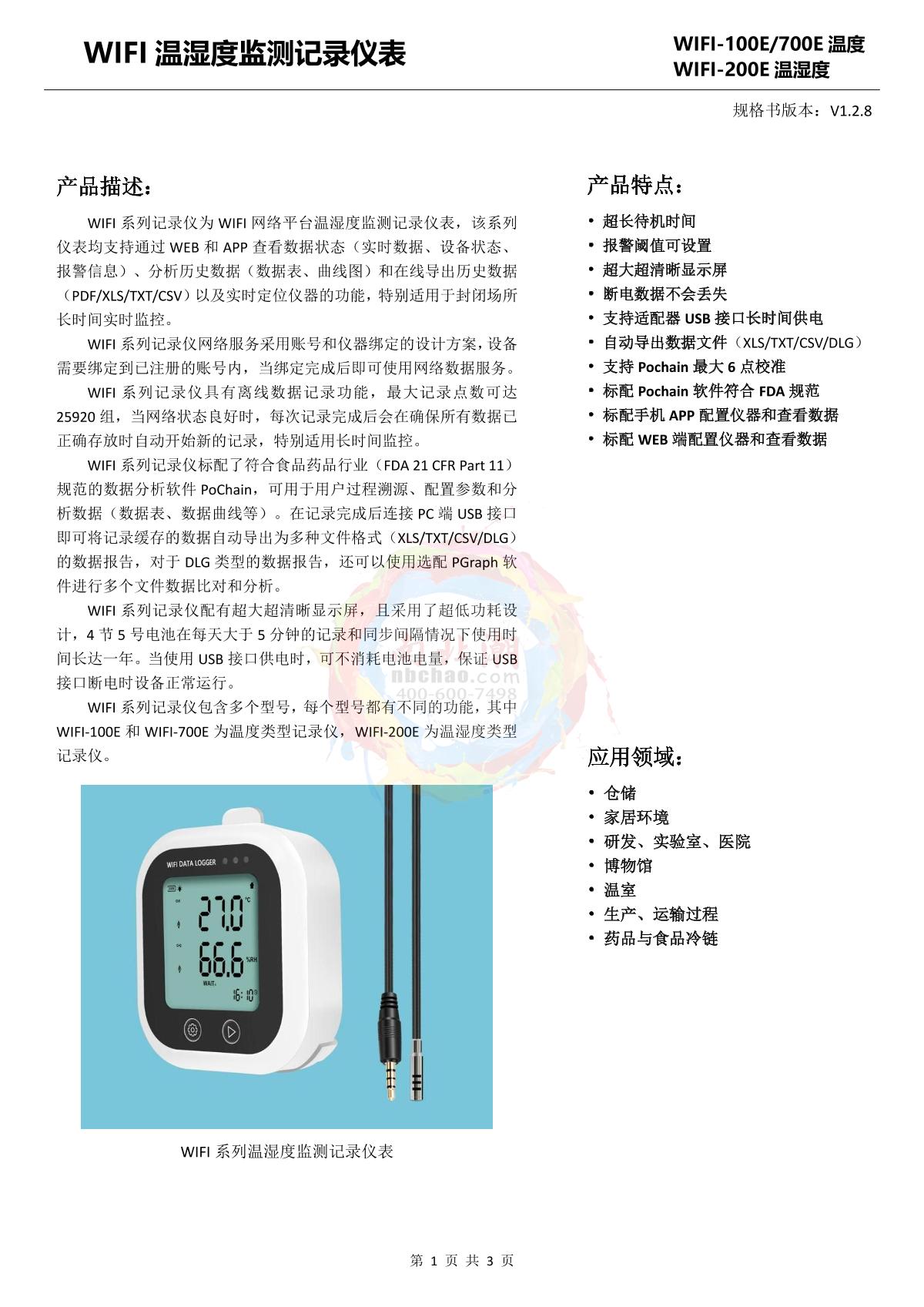 YOWEXA WIFI-200E Temperature and Humidity Monitoring and Recording Instrument brochure