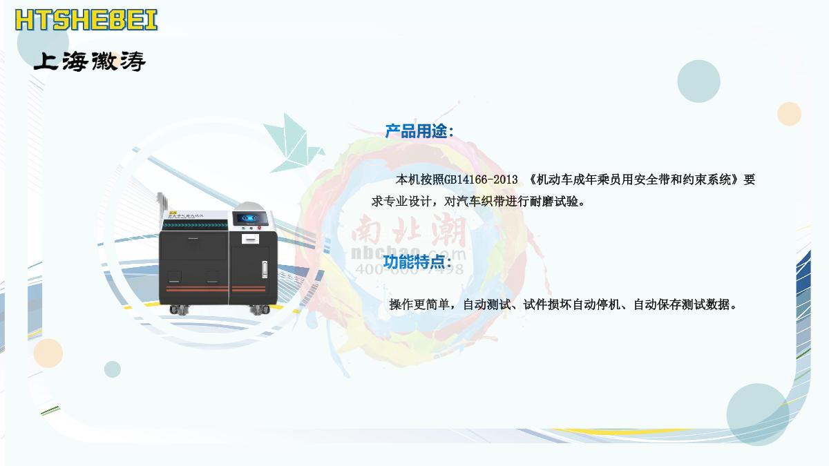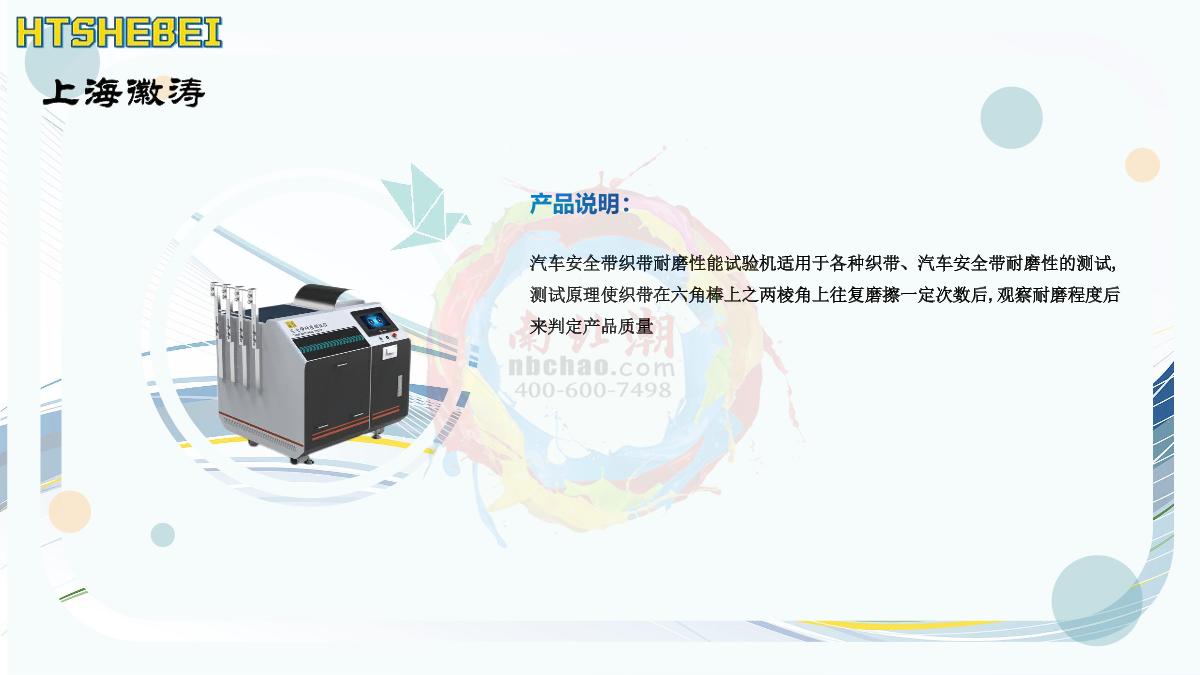 huitao HT-1103 Automobile seat belt webbing wear resistance performance testing machine brochure