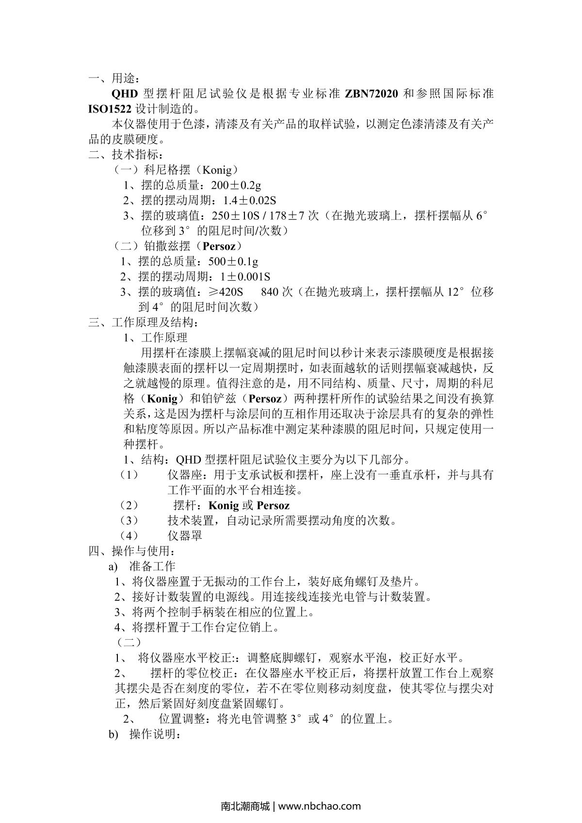 HuiNuo QHD Pendulum damping Tester Manual,OI
