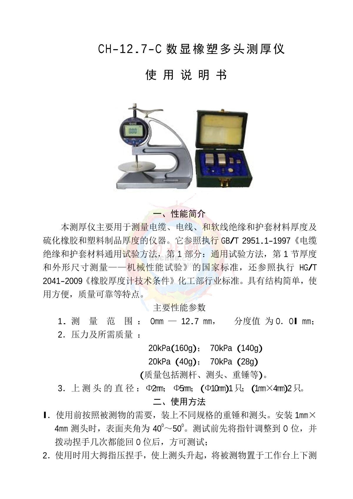 LiuLing CH-12.7-CSX Digital display 1/100 Wire and cable multi-head thickness gauge Manual,OI