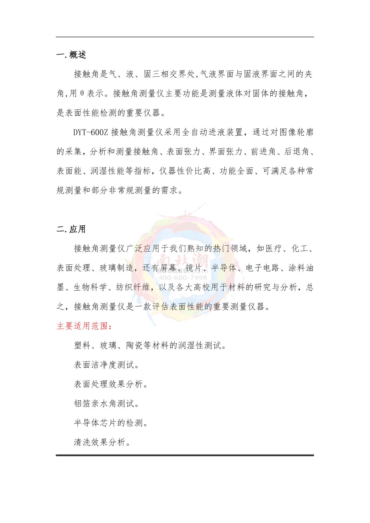 DeYouTe DYT-600Z Contact angle Tester brochure
