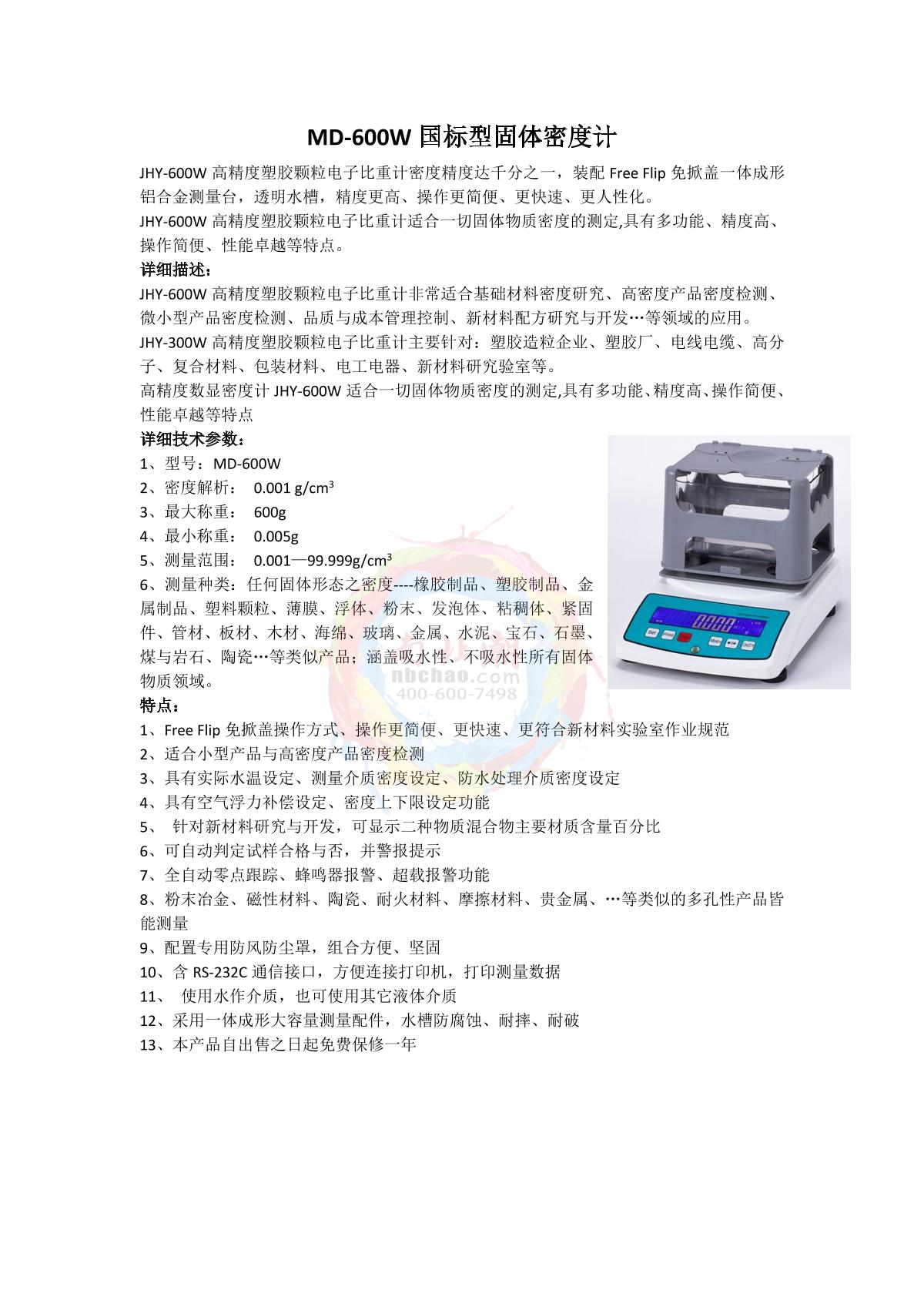 JinHeYuan JHY-600W Solid Density Meter brochure
