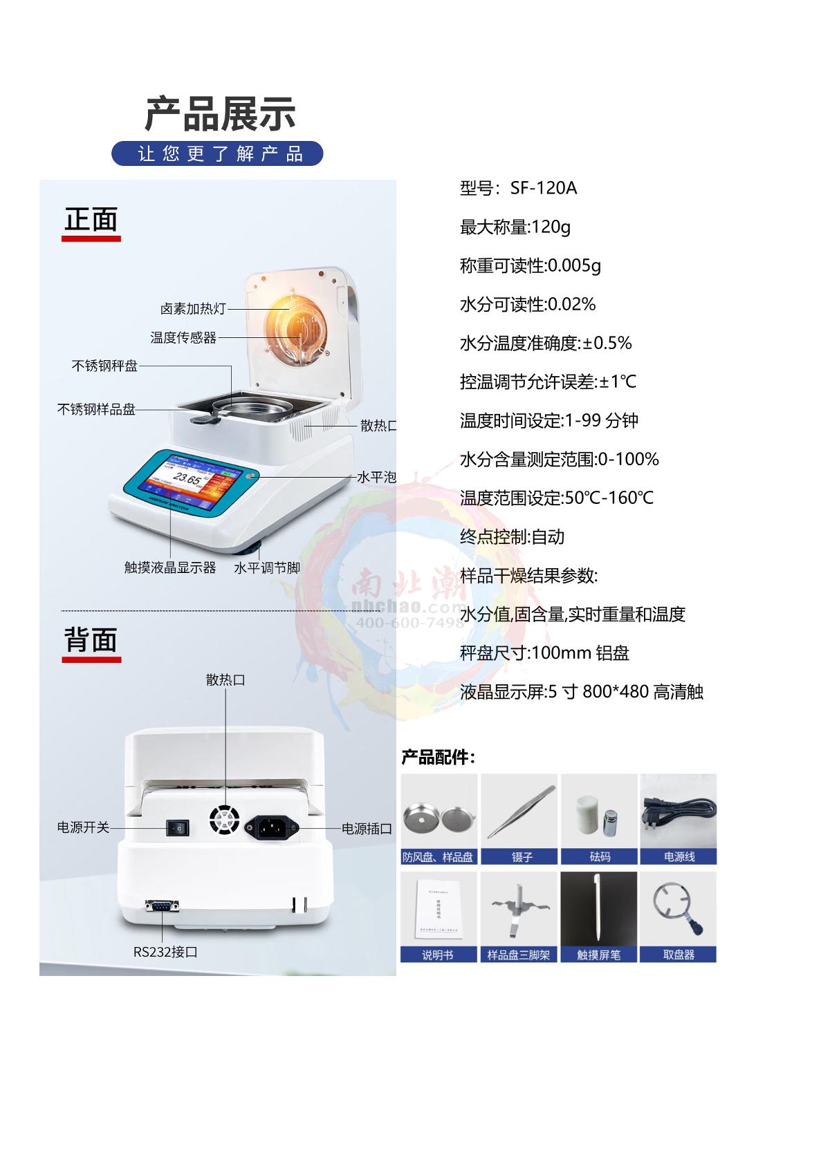 Halogen moisture analyzer JHY-120B Touch screen Moisture Analyzer 120g/0.02%120g0.001g0.02%¥2150.0SE -