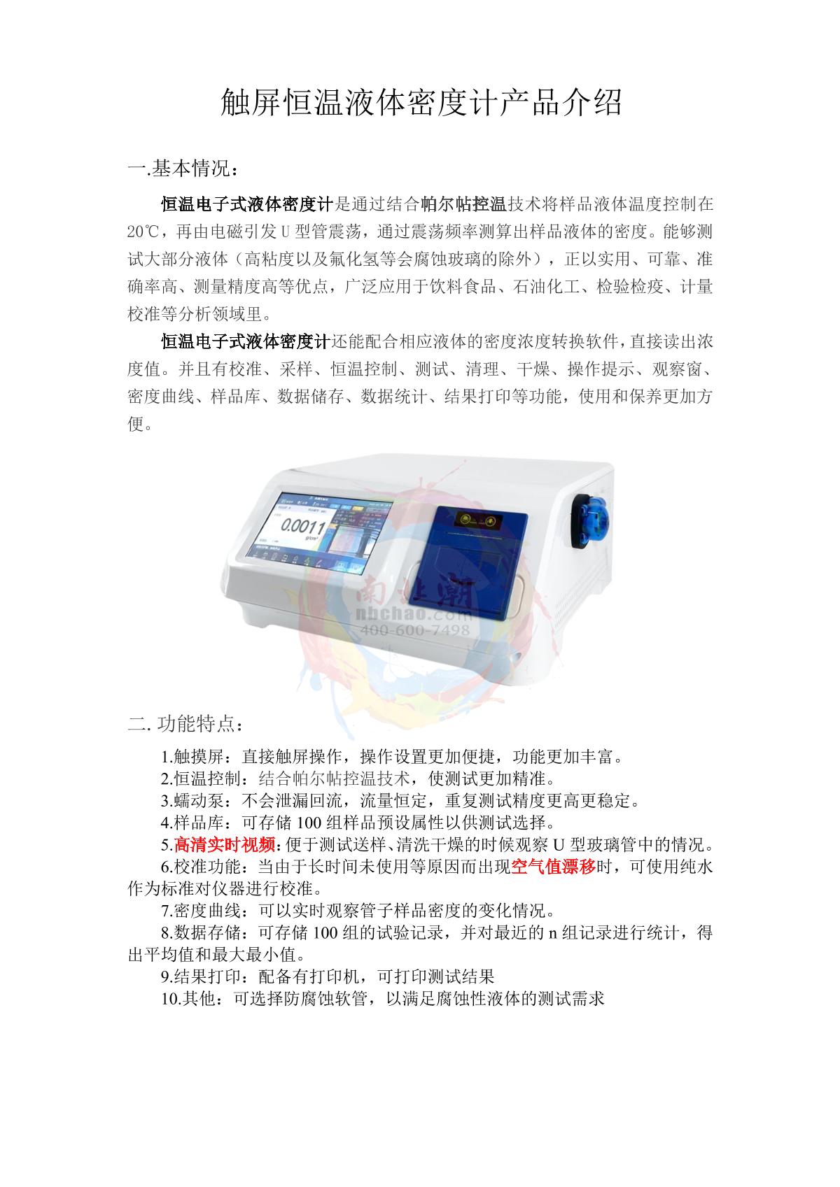 - 1JinHeYuan JHY-1000 Touch screen thermostatic Liquid Density Meter Manual