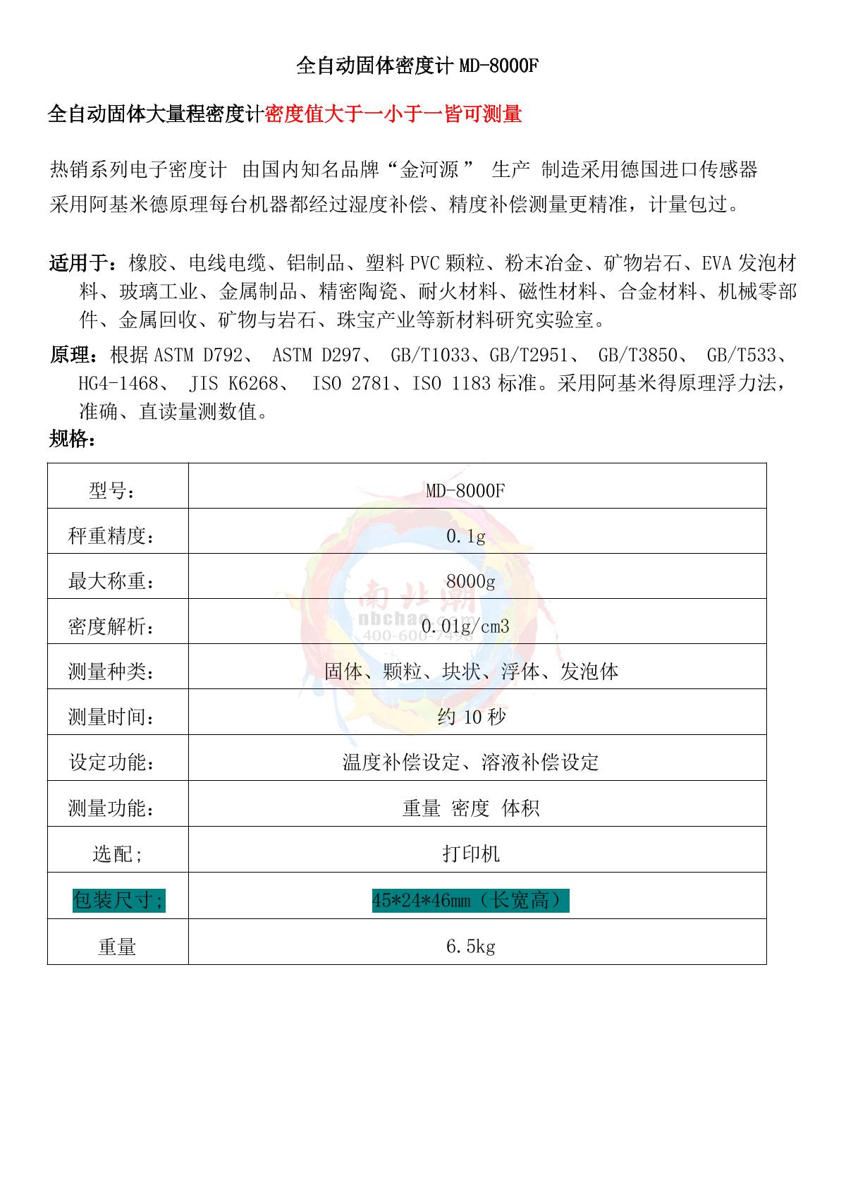 Factory JHY-8000F Solid Density Meter brochure