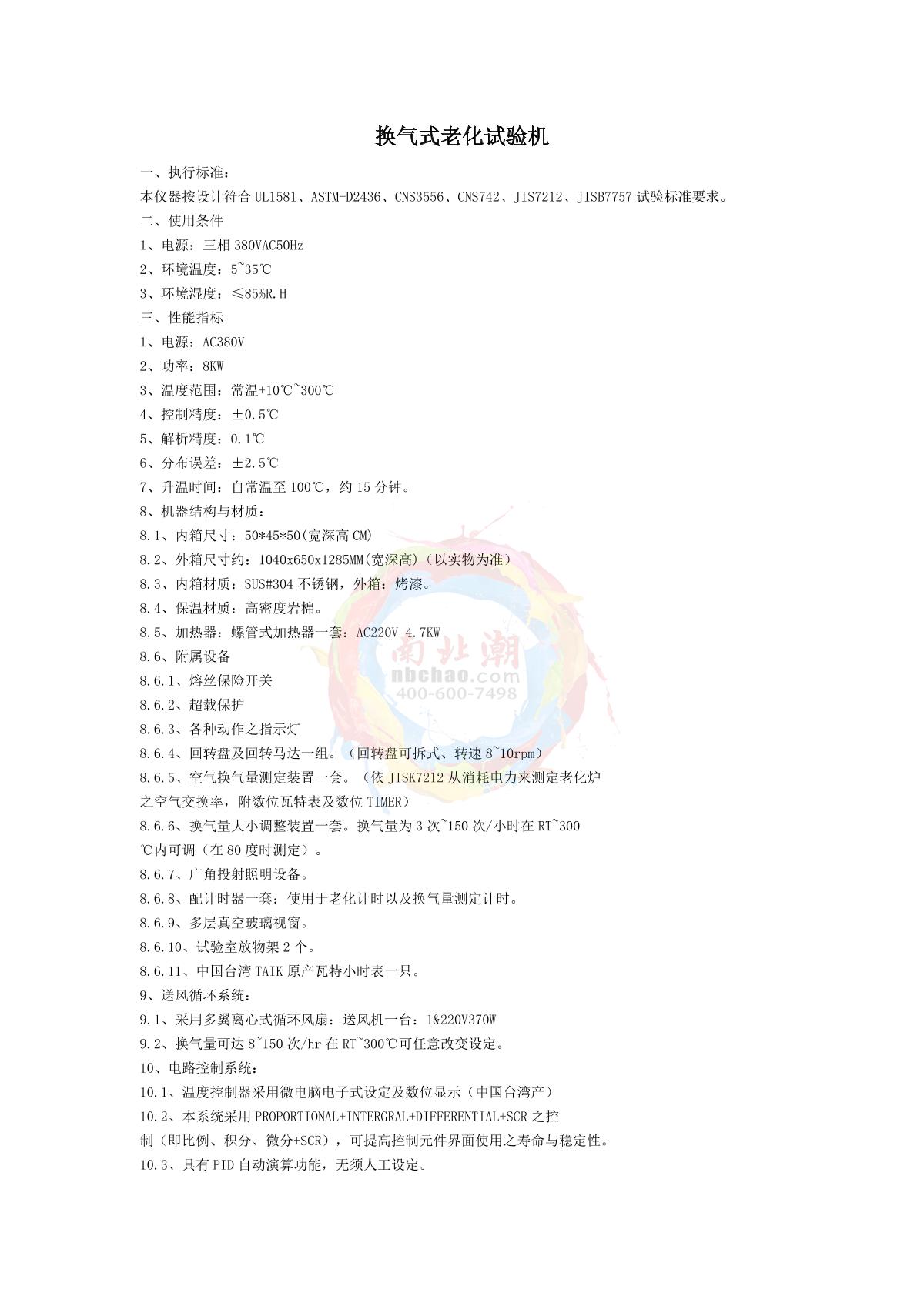 Factory NBC-HQ-150L Ventilation aging testing machine brochure