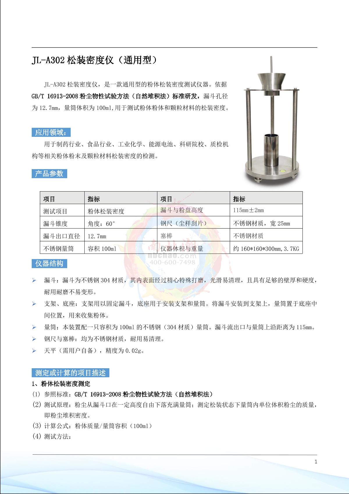JingXin JL-A302 Loose Bulk Density Meter (Universal) brochure