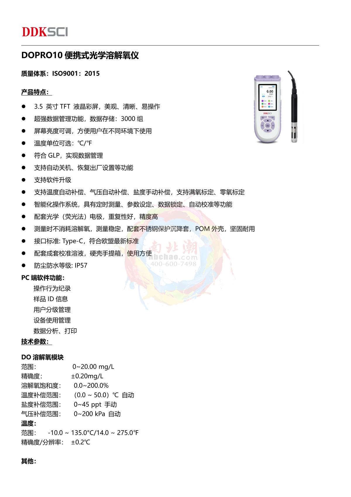 DDKSIC DOPRO10 Portable Dissolved Oxygen Meter (Optical inspection type) (color screen) brochure