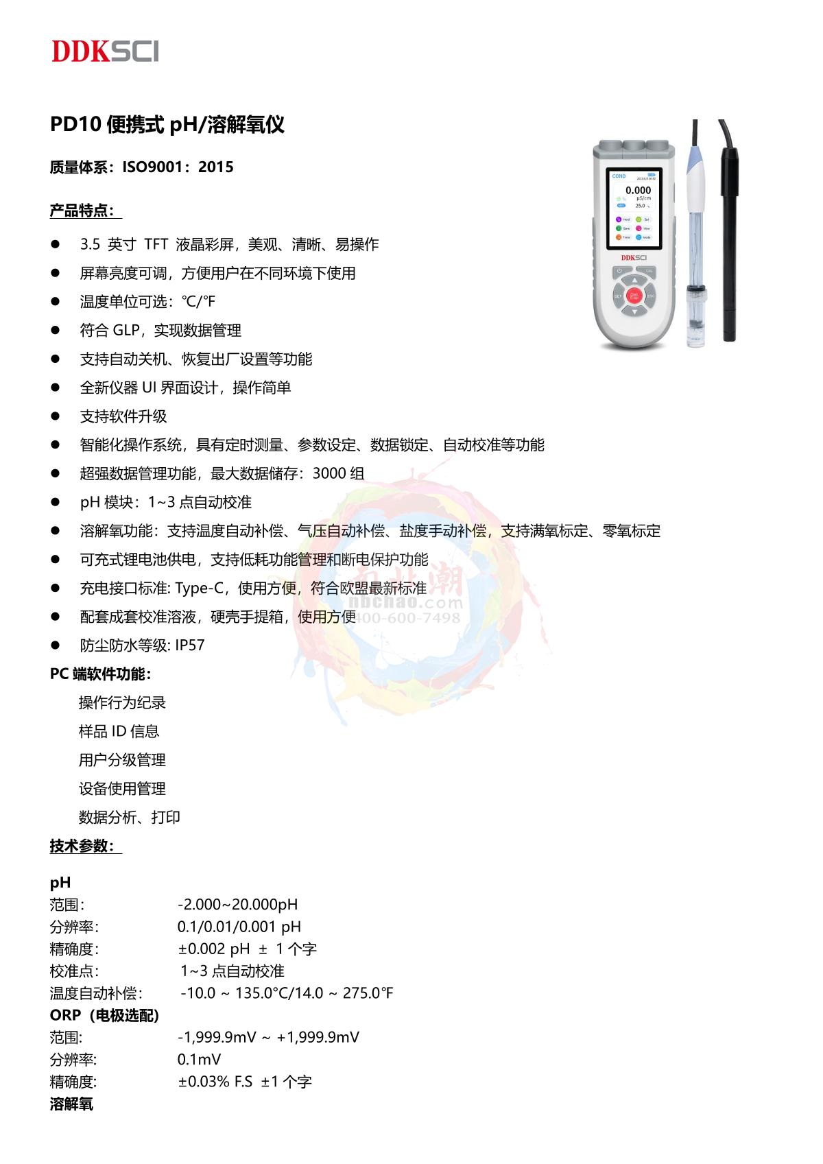 DDKSIC PD10 Portable pH, Dissolved Oxygen Meter (color screen) brochure