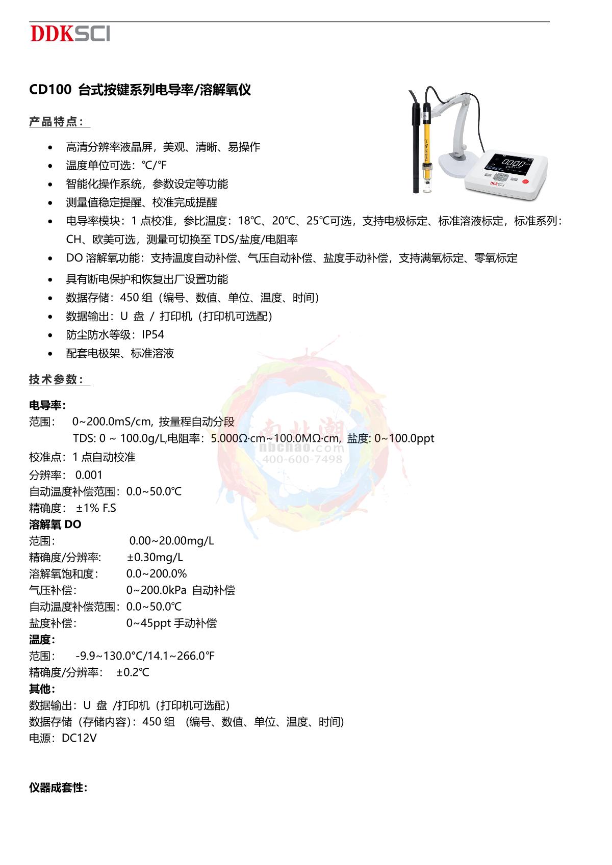 DDKSIC CD100 Desktop conductivity, Dissolved Oxygen Meter (button type) brochure