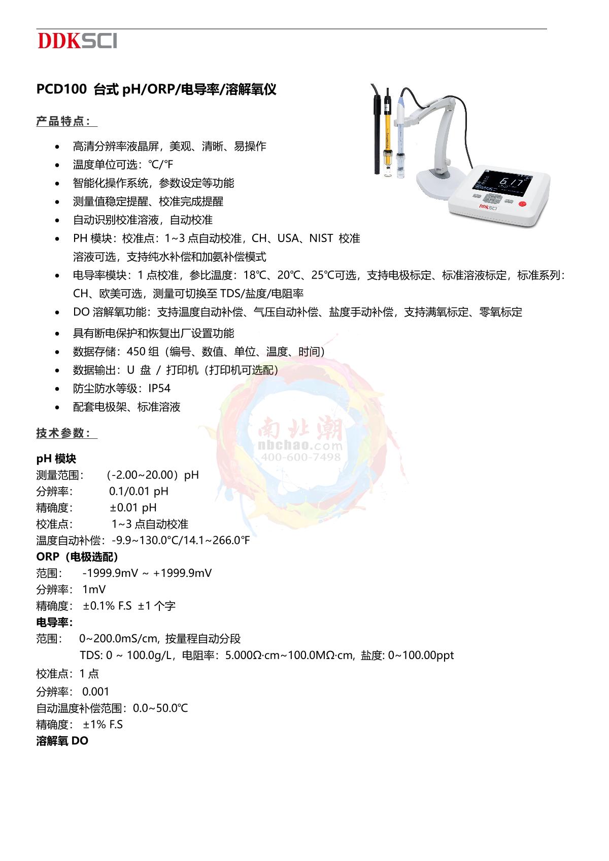DDKSIC PCD100T touch screen desktop pH/conductivity/Dissolved Oxygen MeterpH, mV (ORP electrode optional), conductivity, resistivity, TDS, salinity, dissolved oxygen concentration, dissolved oxygen saturation, ℃(-2.000~20.000)pH0.1/0.01/0.001pH¥9260.0SE