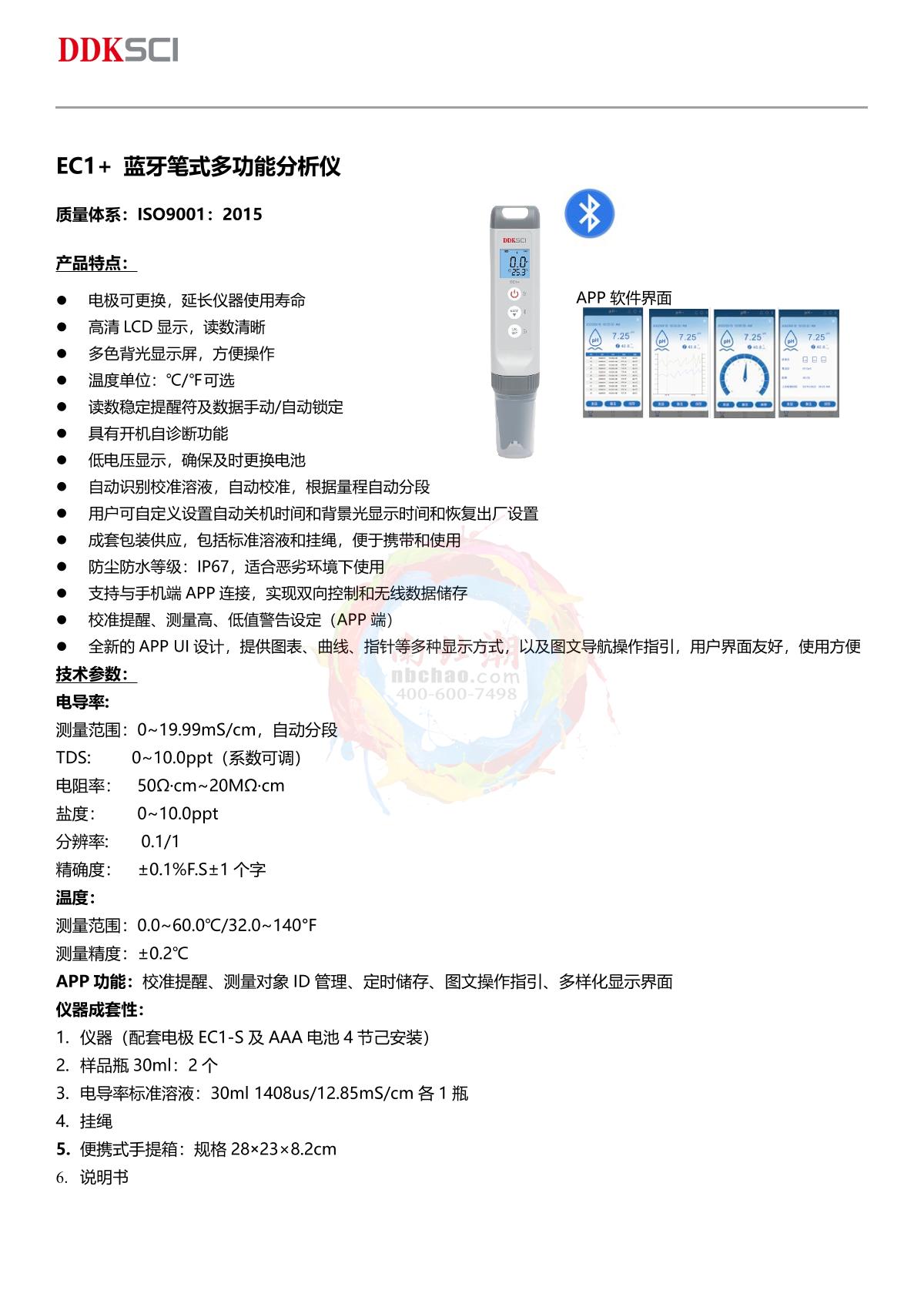 DDKSIC EC1+ Bluetooth Pen Conductivity Meter brochure