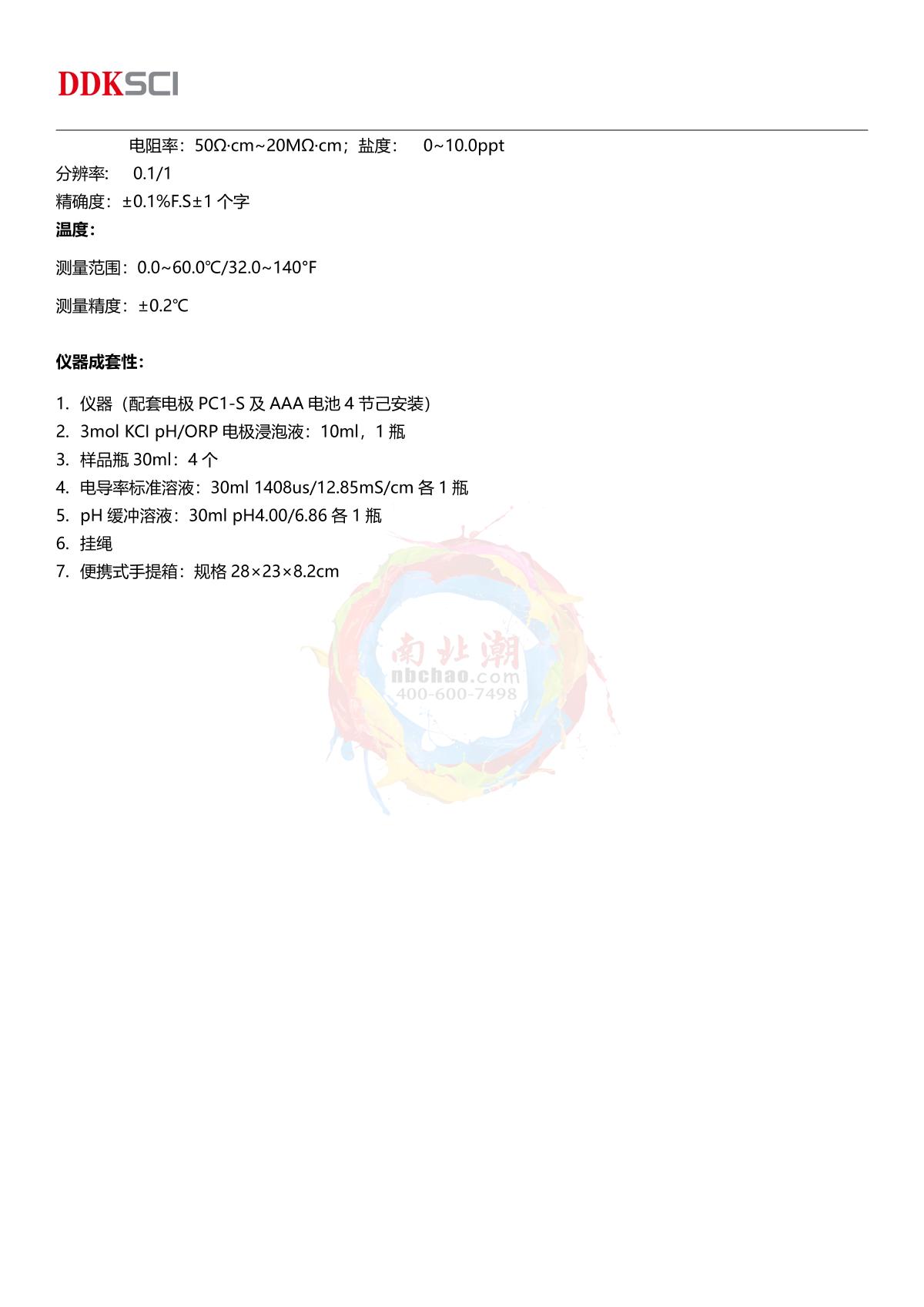 DDKSIC EC10 Portable Conductivity Meter (color screen) conductivity/resistivity/TDS/salinity/℃Level 0.50~2000.0mS/cm0.001¥2690.0SE -