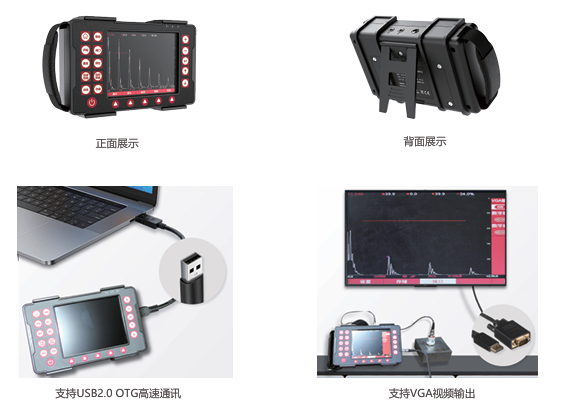MUT100S all-digital ultrasonic flaw Detector, lightweight body, easy to carry, 640×480 digital true color LCD display, support brightness adjustment, full-screen display with a variety of color schemes, in different light environments can present defect waveforms in high definition, built-in high-frequency processor can achieve complex calculations and intelligent analysis, low-power design equipped with large-capacity lithium battery module, can be long standby for more than 8.5 hours. It also has a variety of communication modes such as mini-USB communication, Bluetooth communication, VGA interface, and digital input and output interface; Master-slave menu design, support multi-language version. Full waterproof, oil and dust up to IP65 protection level. It is a professional precision instrument required for defect detection, quality control, in-service safety monitoring and life assessment in the fields of petroleum, chemical industry, metallurgy, shipbuilding, aviation, railway, etc.