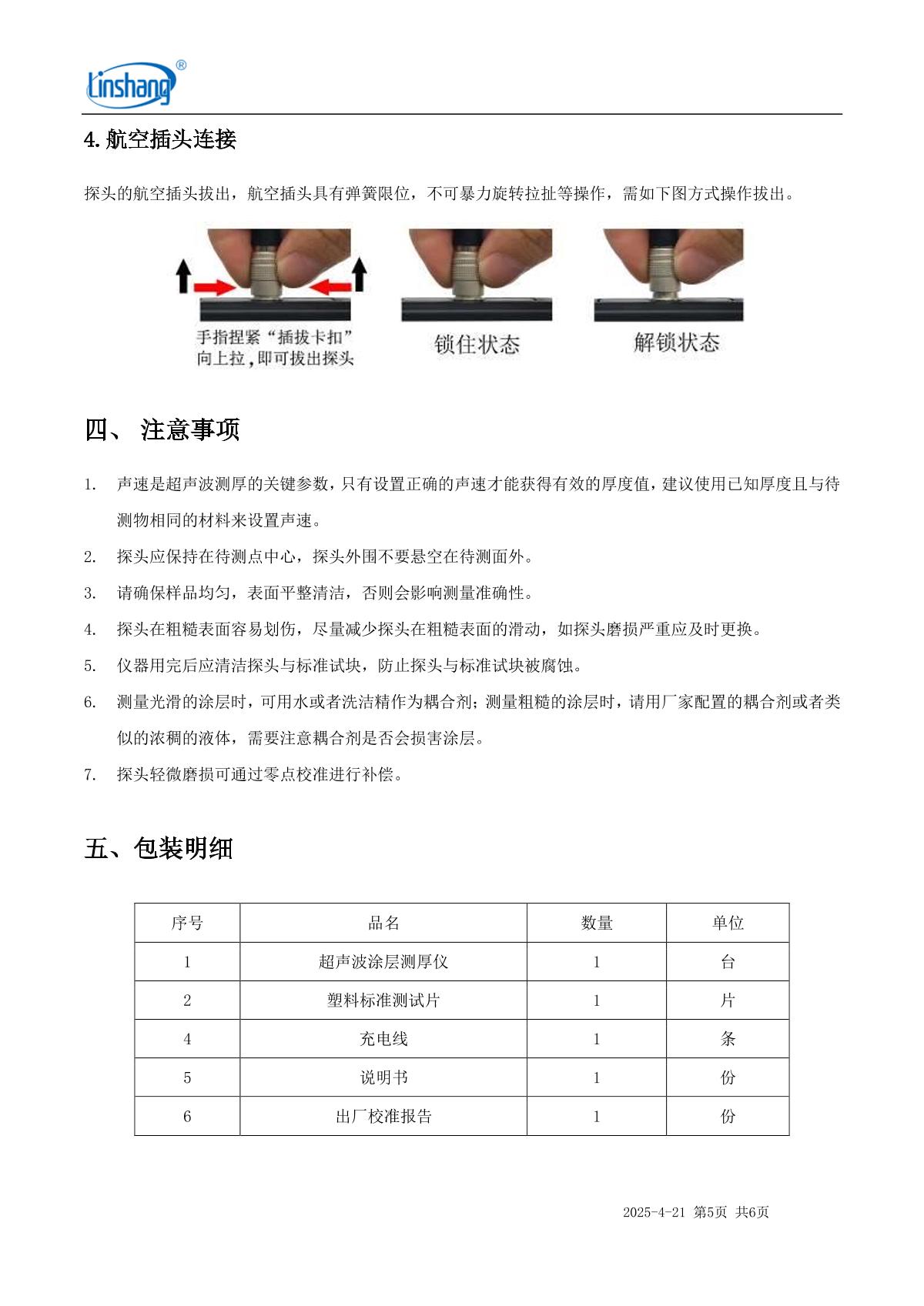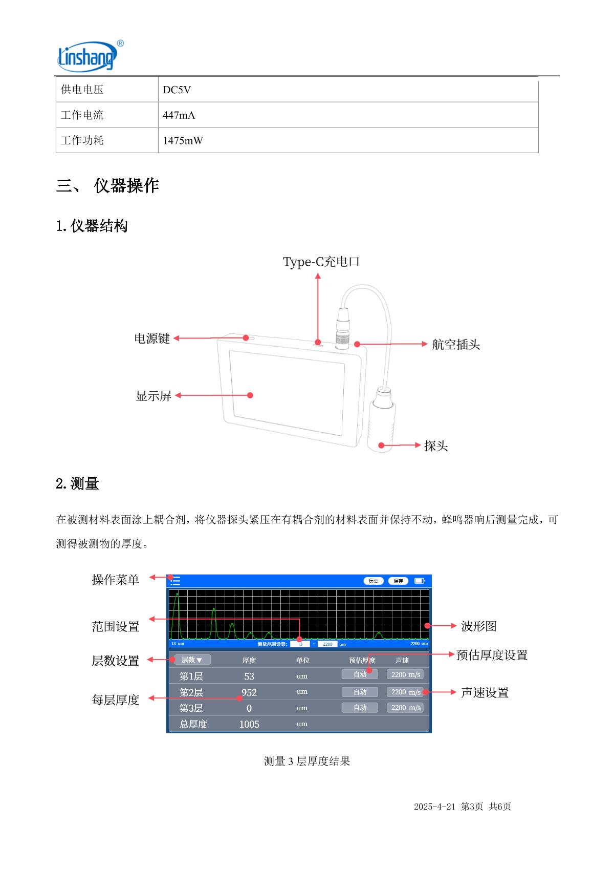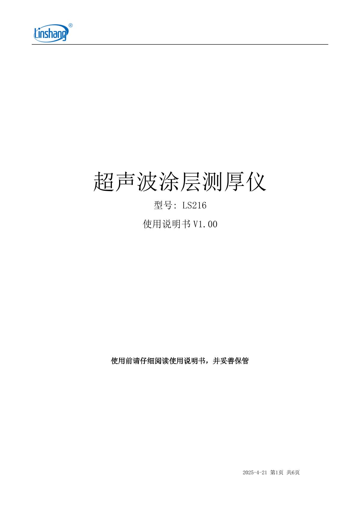 LinShang LS216 Multilayer Ultrasonic Thickness Gauge Manual,OI