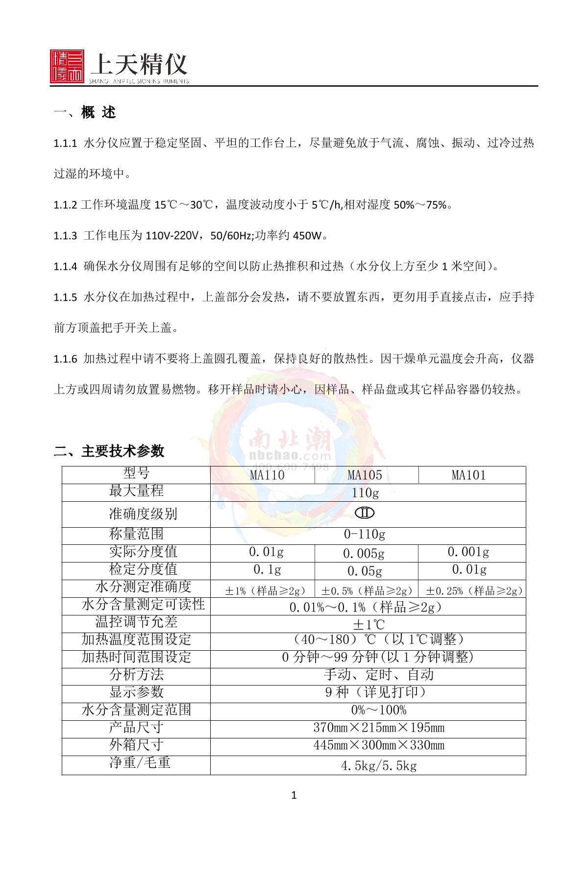 ShangTianJingYi MA110 Moisture Analyzer Manual,OI