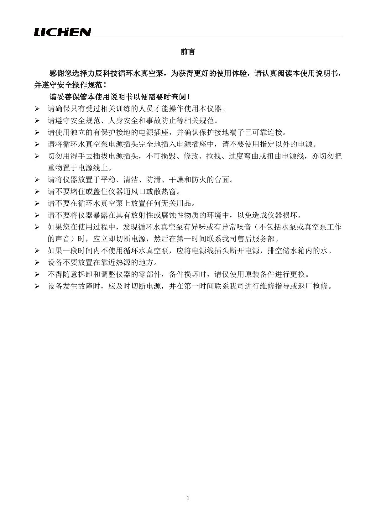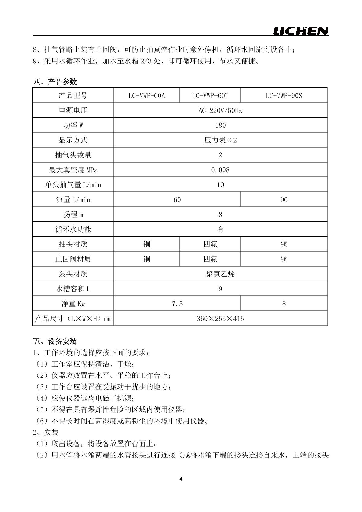 LICHEN LC-VWP-90S circulating water Vacuum Pump Manual,OI