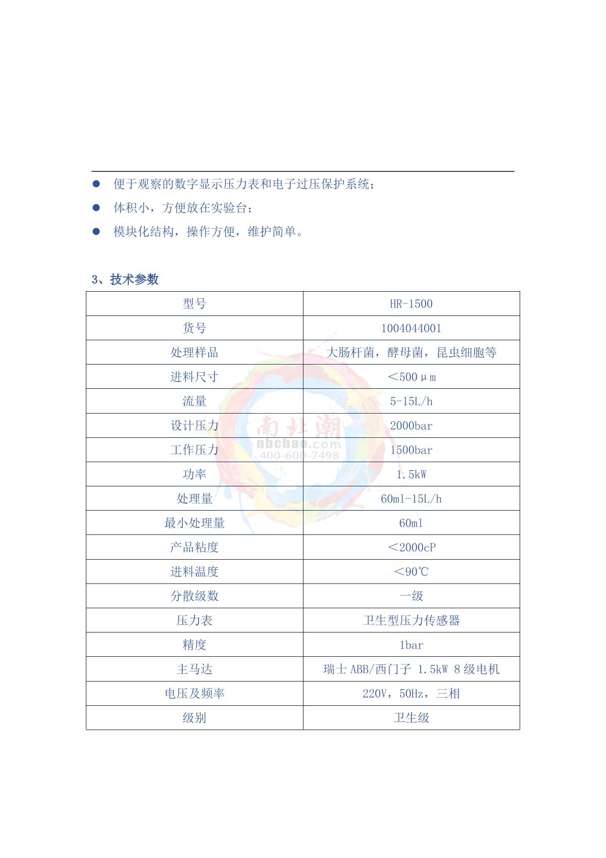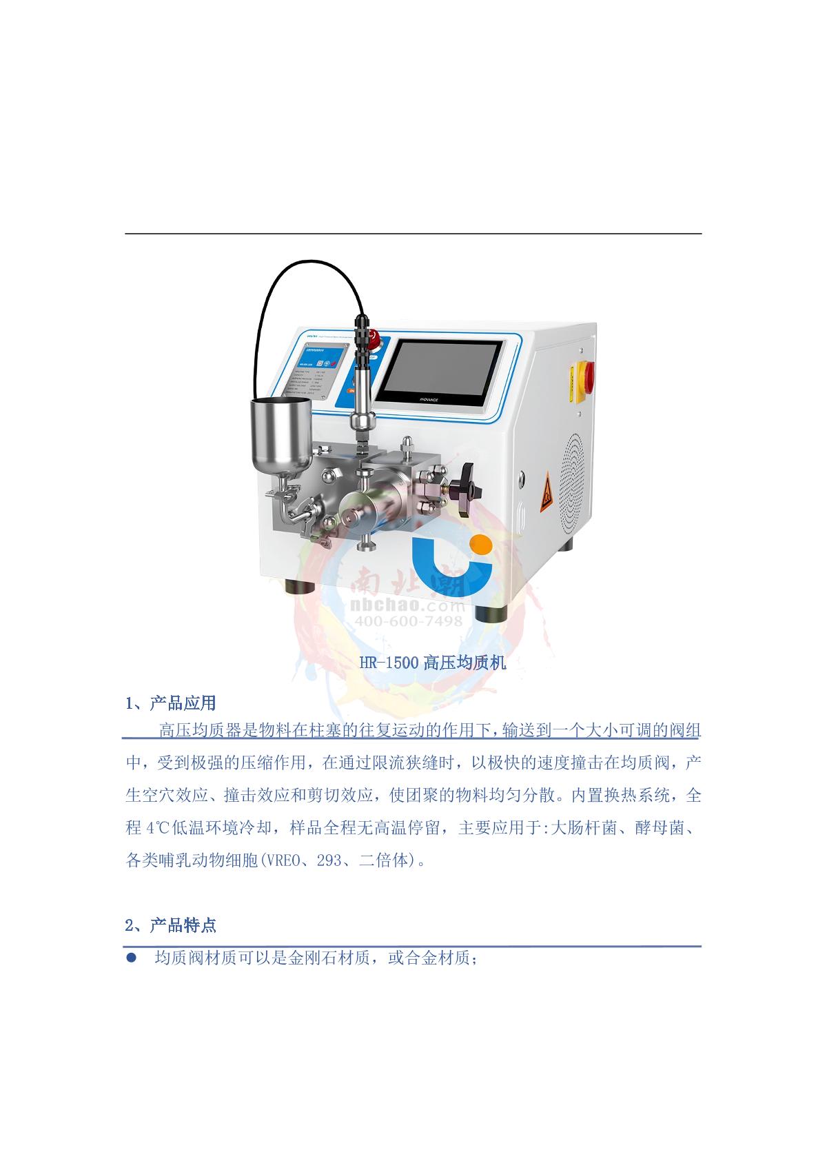 HuXi HR-1500 High Voltage Homogenizer brochure