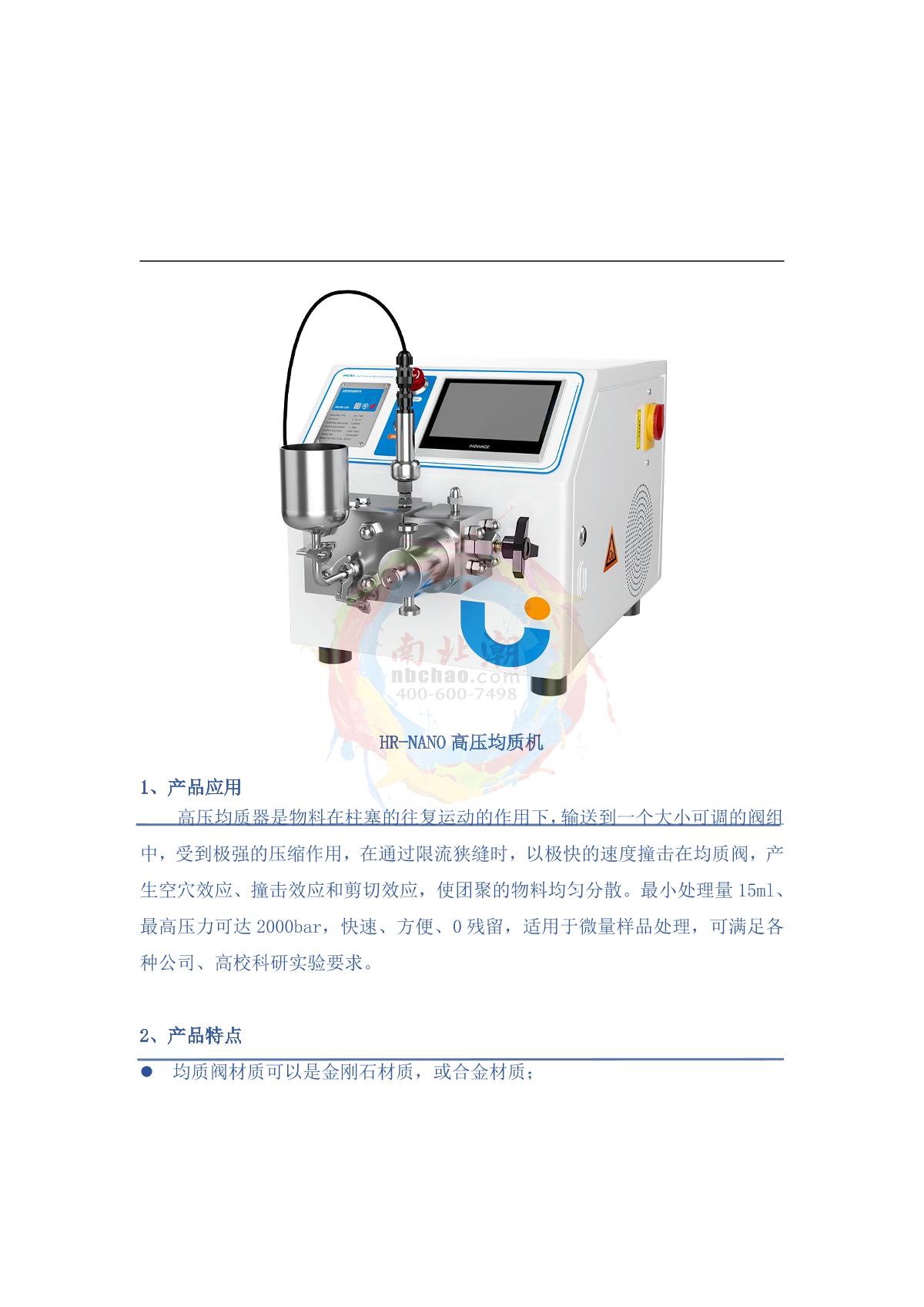 HuXi HR-NANO High Voltage Homogenizer brochure