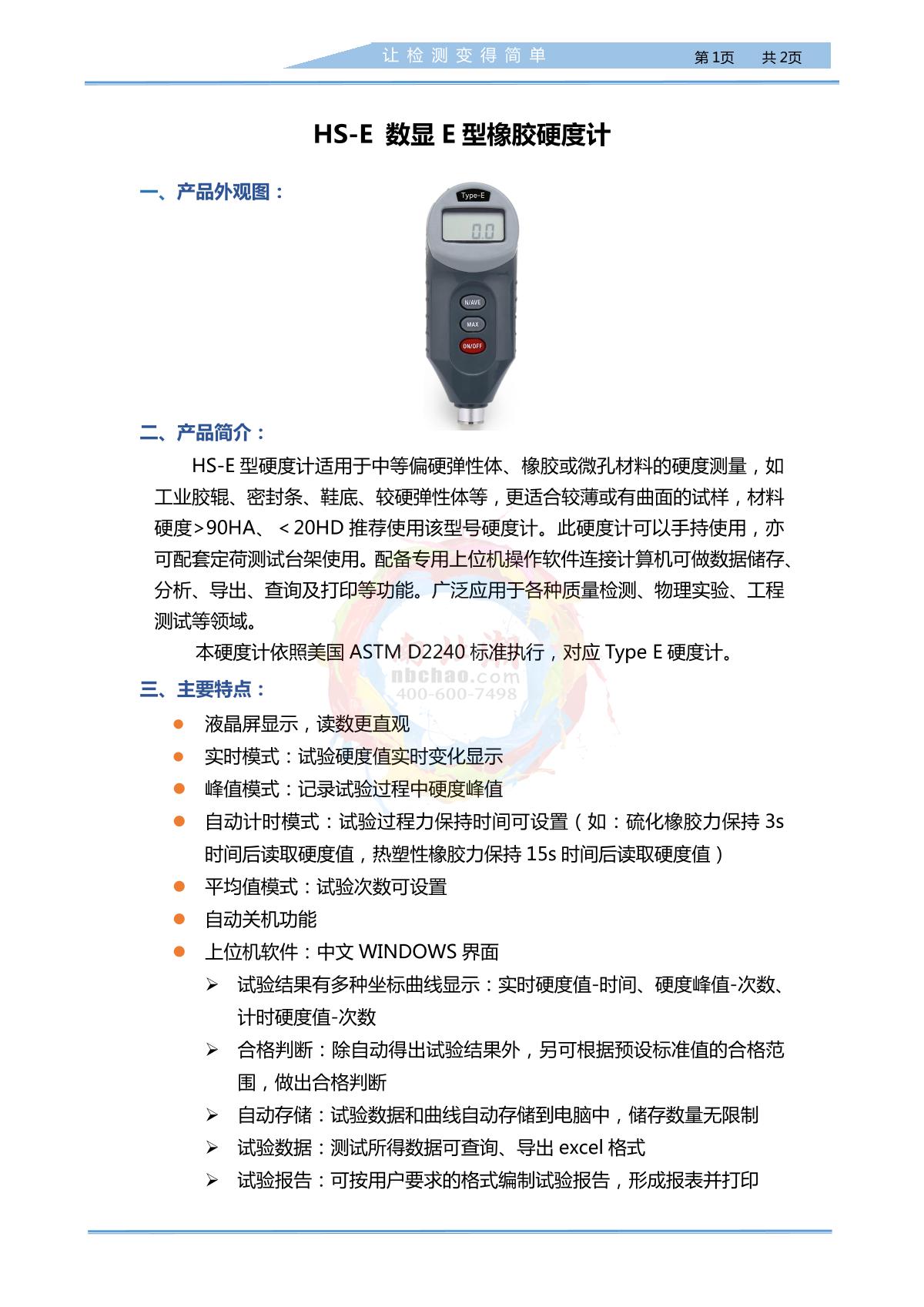 HBO HS-E Digital E type rubber Hardness Gauge brochure