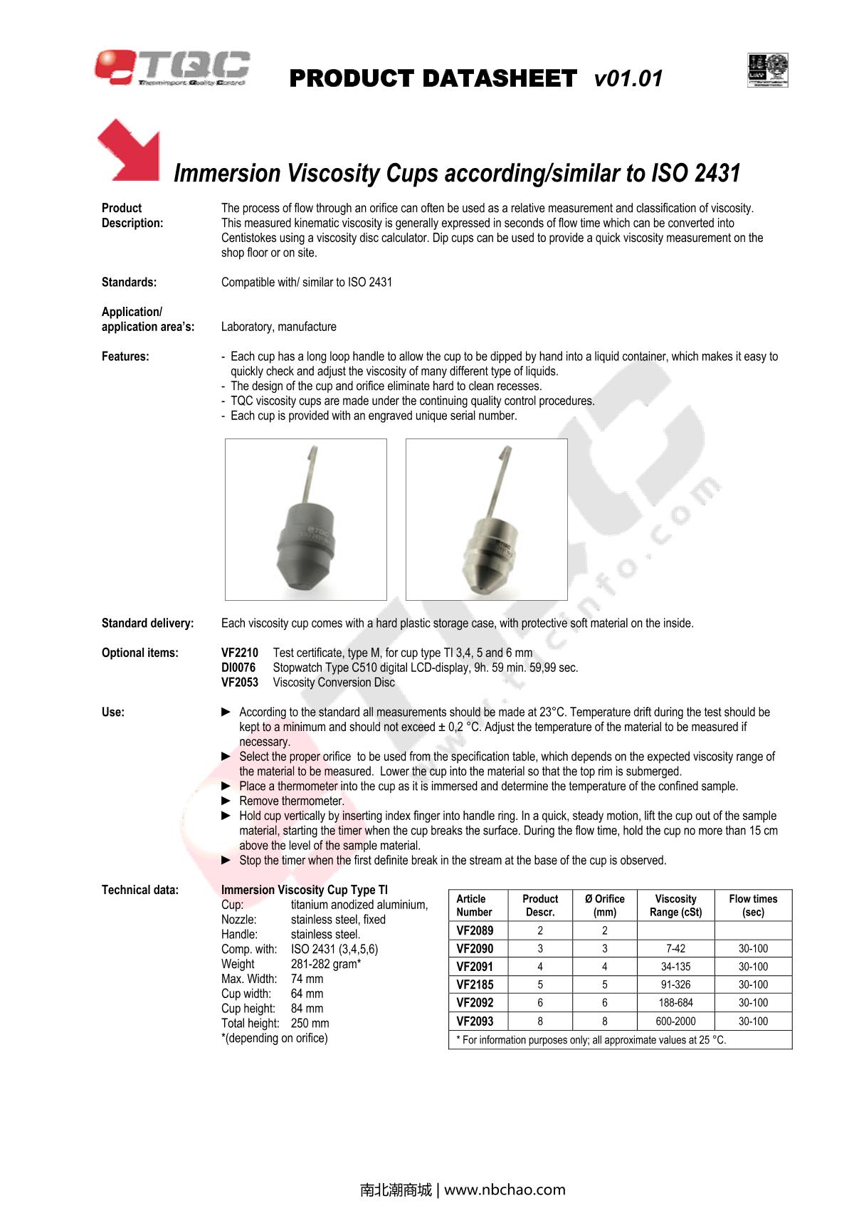 TQC sheen VF2090 Immersion Viscosity Cup Manual,OI