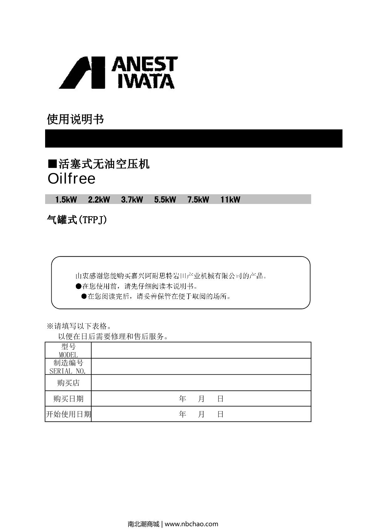 ANEST IWATA TFPJ37-10 Oil-free piston Air Compressor Manual,OI