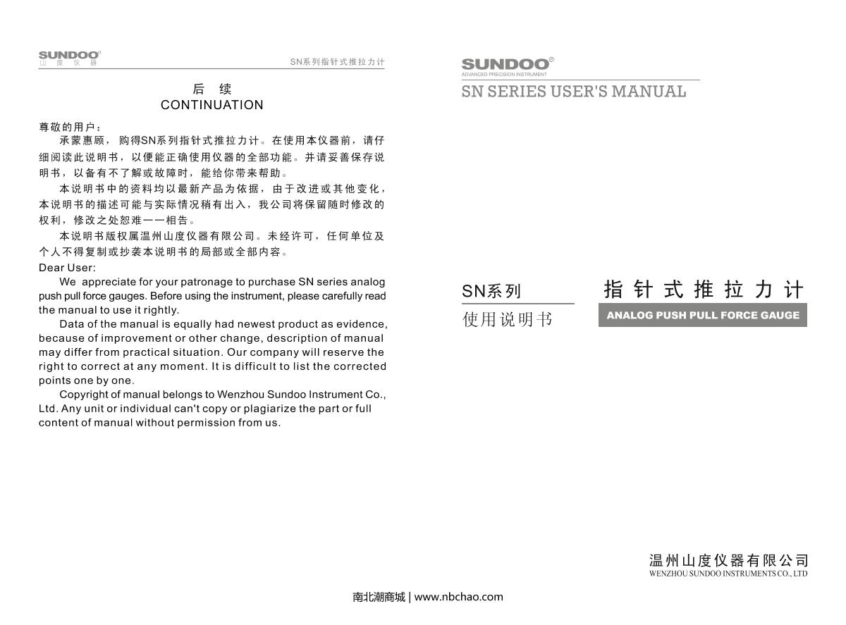 - 6SUNDOO SN-20 Tension and Compression Force Gauge (Pointer Type) Manual