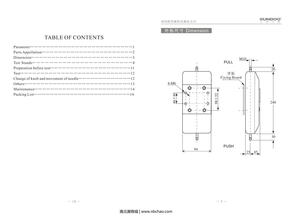 SUNDOO SKN-2 Tension and Compression Force Gauge (Pointer Type) Manual,OI