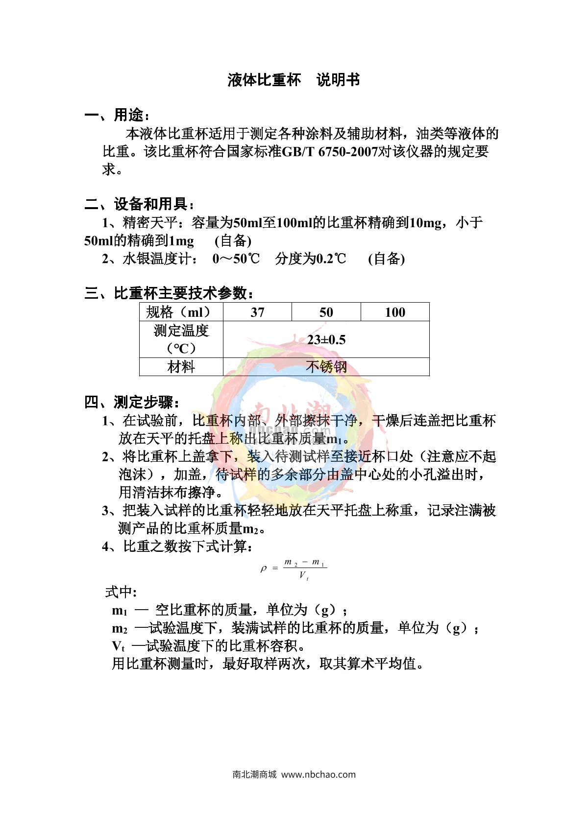 - 3Pushen QBB-50ml Coating Specific Gravity Cup Manual