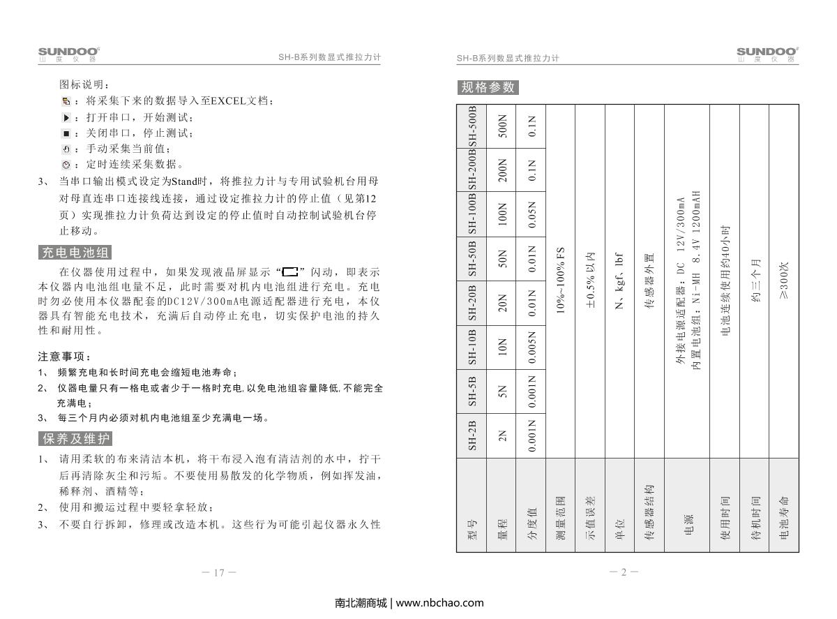 SUNDOO SHB-5B Tensile and Compression Force Gauge (Digital Display) Manual,OI