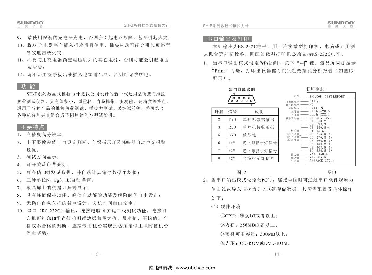 SUNDOO SHB-200B Tensile and Compression Force Gauge (Digital Display) Manual,OI