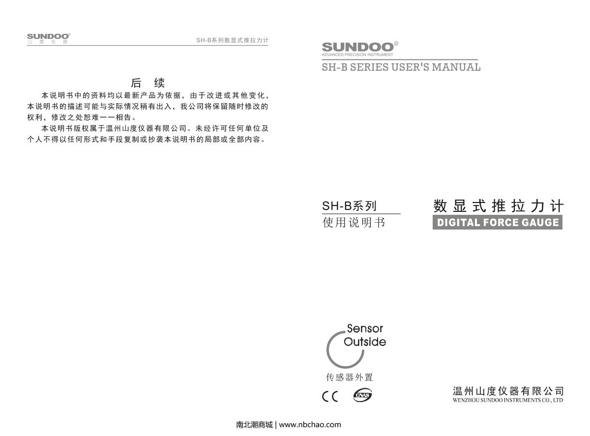 SUNDOO SHB-500B Tensile and Compression Force Gauge (Digital Display) Manual,OI