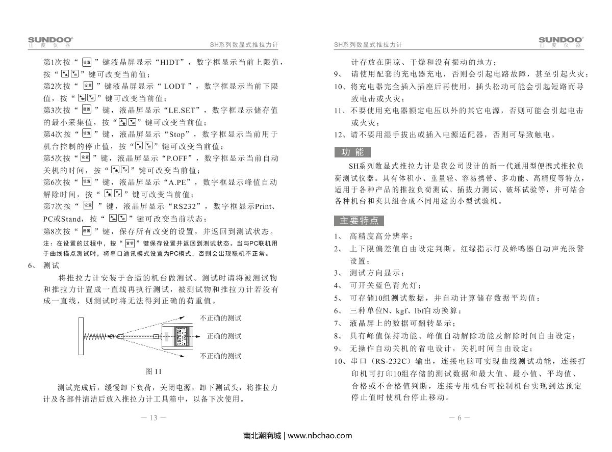SUNDOO SHB-10 Tensile and Compression Force Gauge (Digital Display) Manual,OI