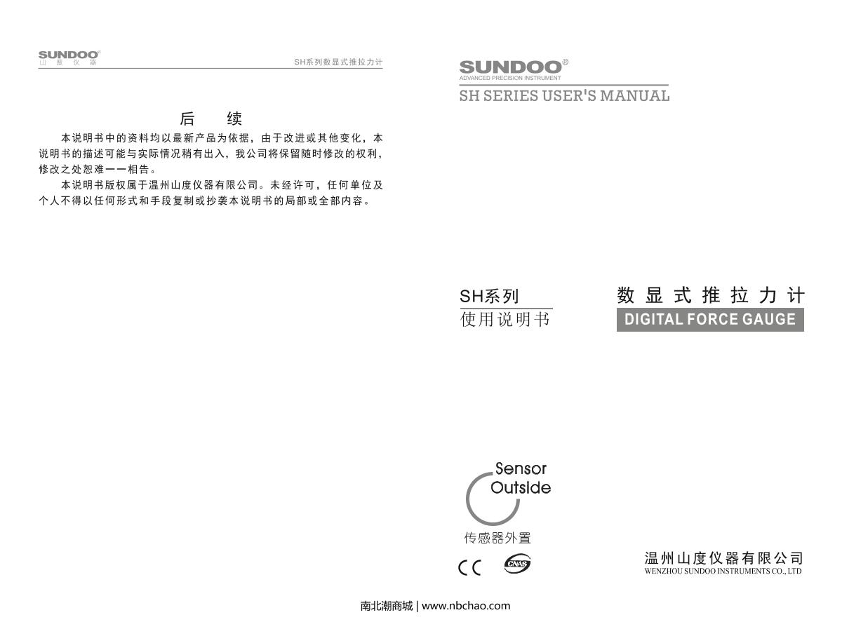 SUNDOO SHB-20K Tensile and Compression Force Gauge (Digital Display) Manual,OI