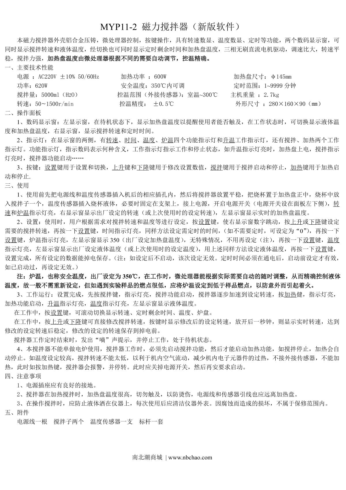 ChiJiu MYP11-2 Thermostatic Magnetic Stirrer Manual,OI